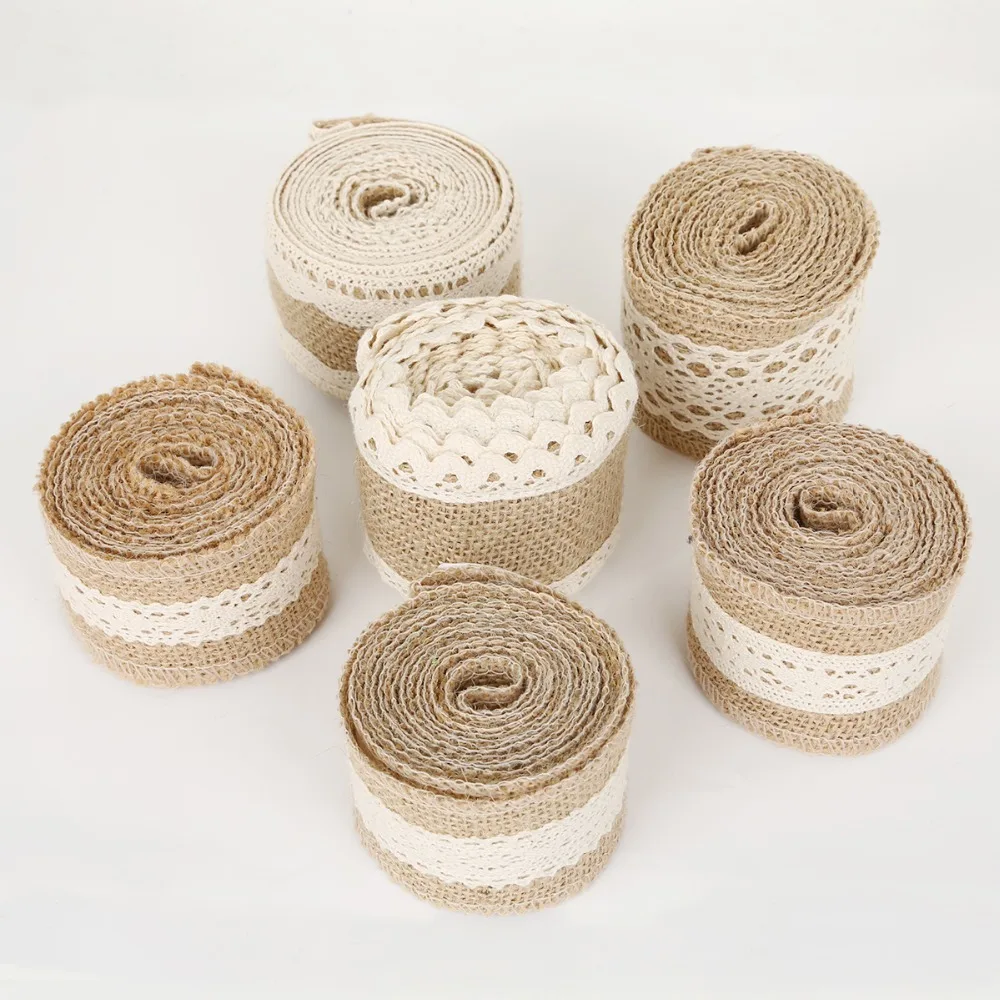 2 м ширина 5 см6 см цвет слоновой кости, натуральный джутовый рулон, мешковатые ленты с хлопковым кружевом для самостоятельного украшения, мешковина, свадьбы