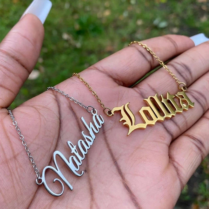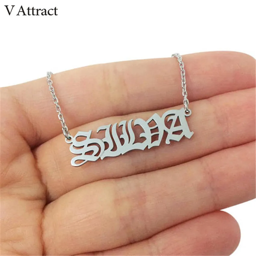 V притягивающее старинное английское персонализированное именное ожерелье для женщин колье из нержавеющей стали золотого цвета изготовленное на заказ ювелирное изделие подарок на день рождения