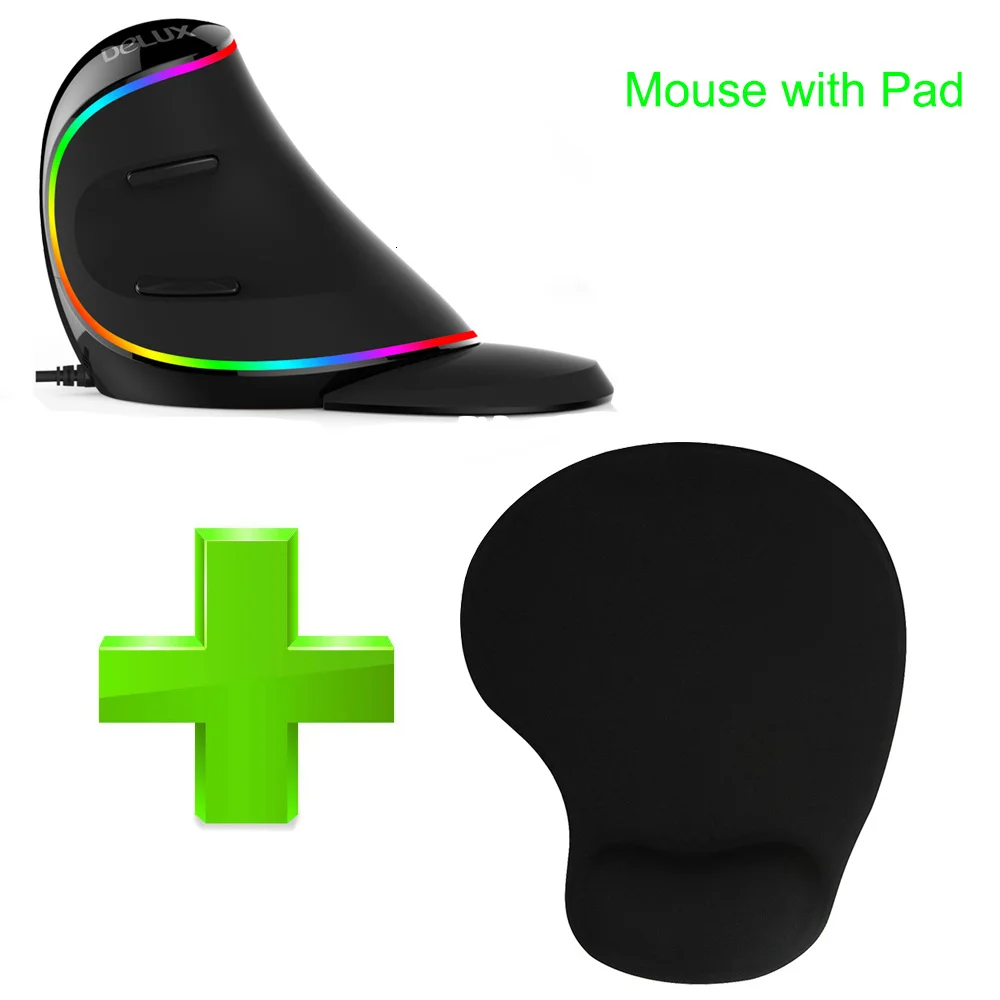 Delux RGB игровая мышь офисная эргономичная Вертикальная мышь USB оптическая компьютерная мышь Mause PC Gamer наручные здоровые мыши 1600DPI для ноутбука