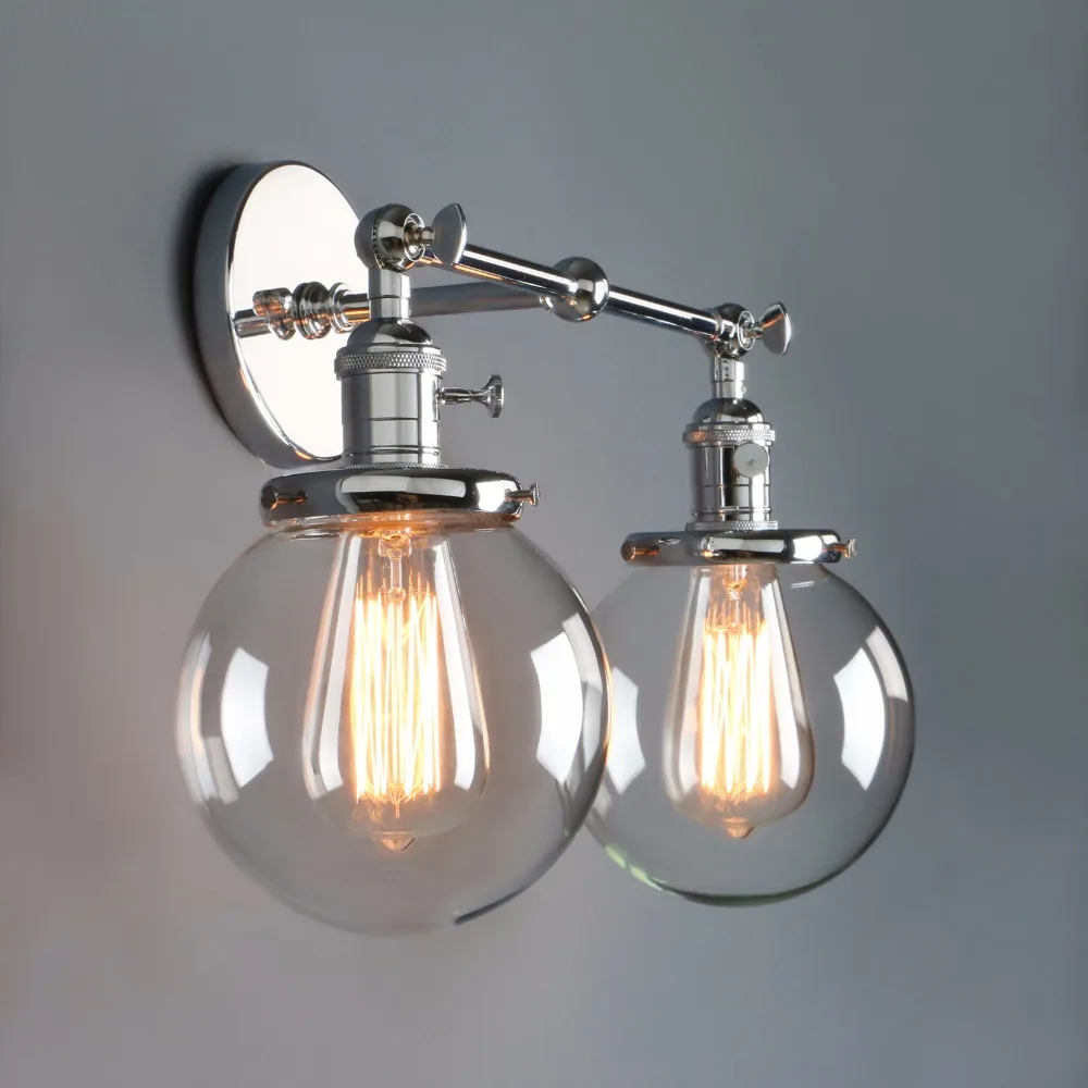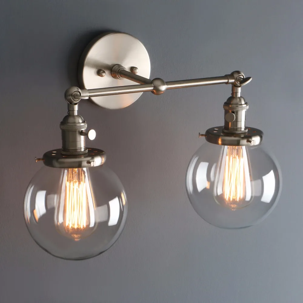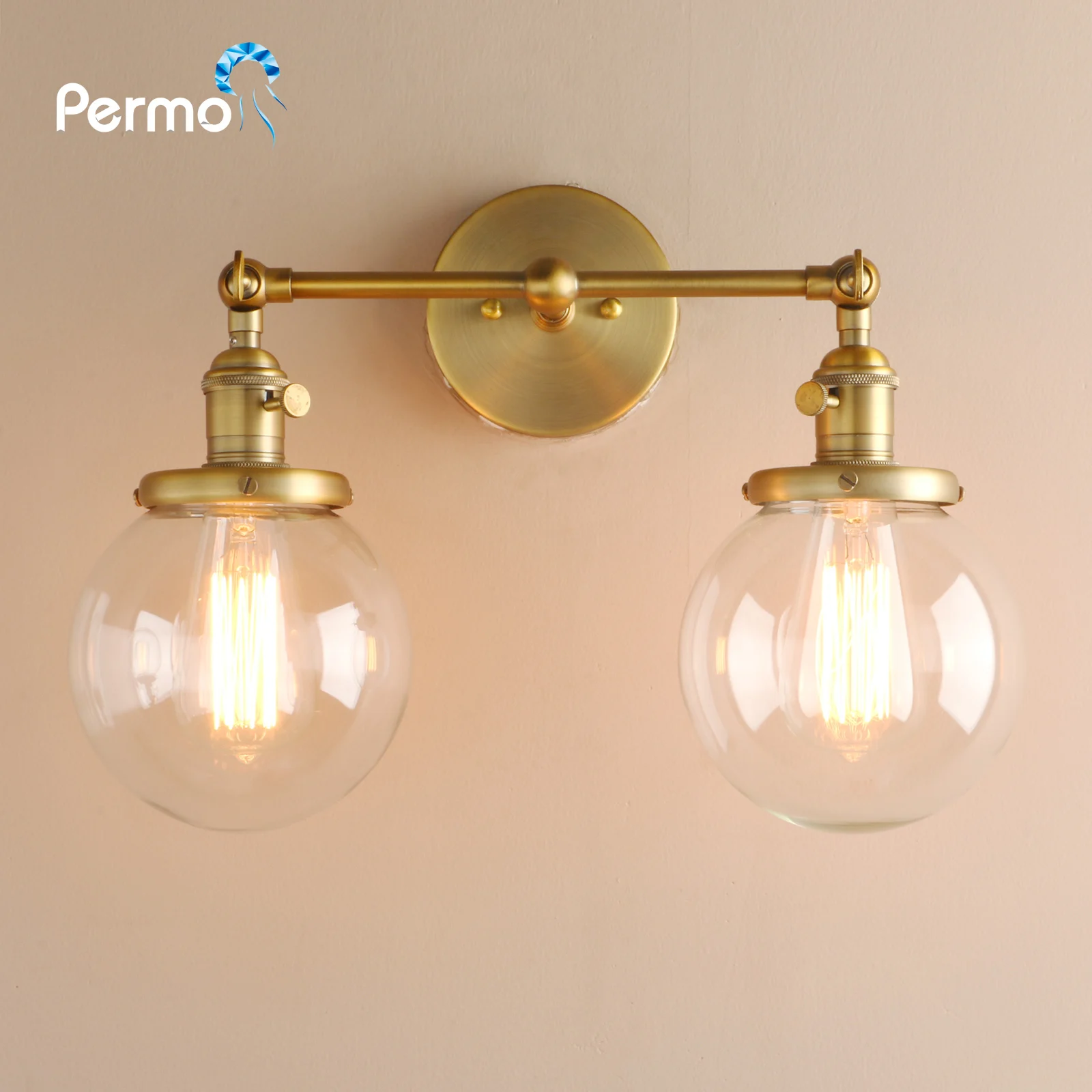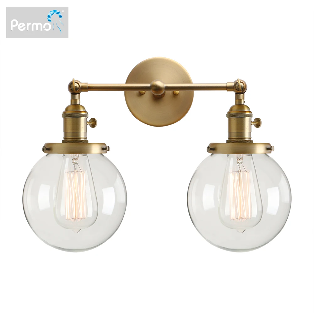 Современный настенные светильники для спальни настенный светильник Permo для лестниц, винтажный настенный светильник с двойными круглыми стеклянными головками 5,9 дюйма, комнатное освещение