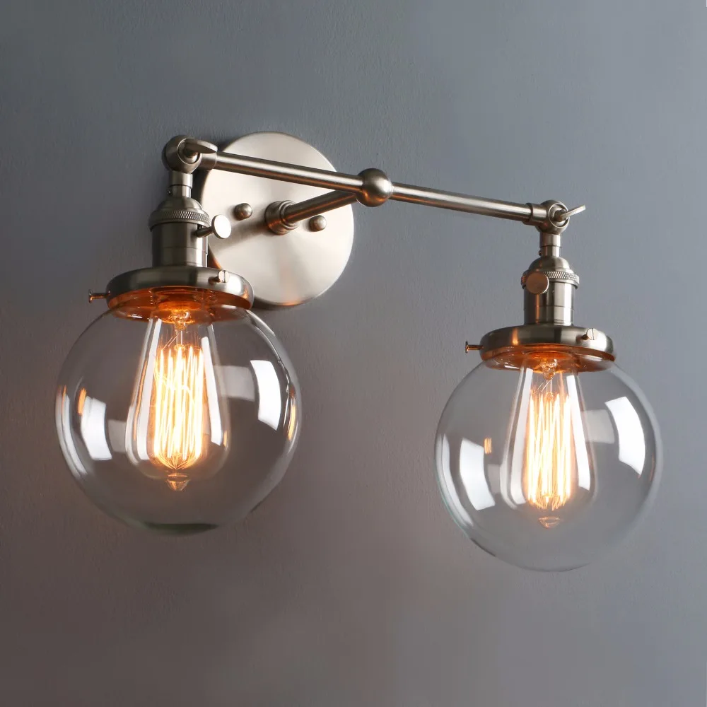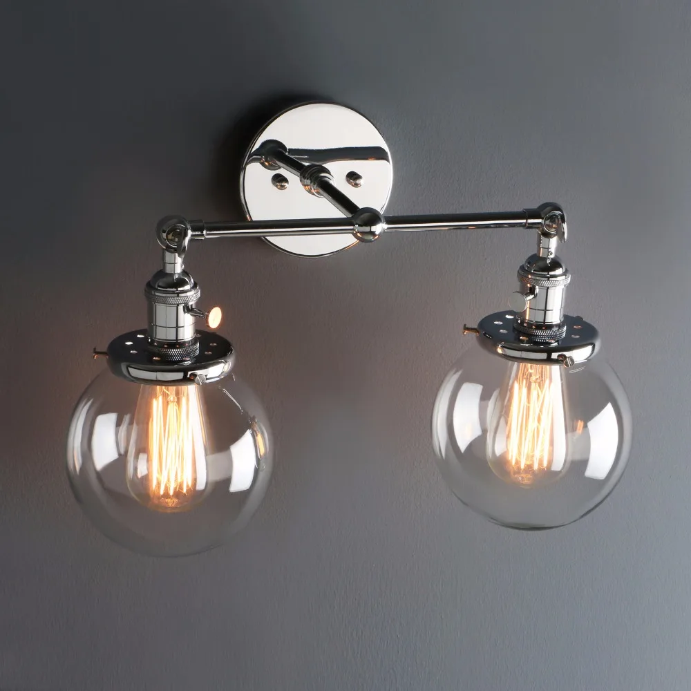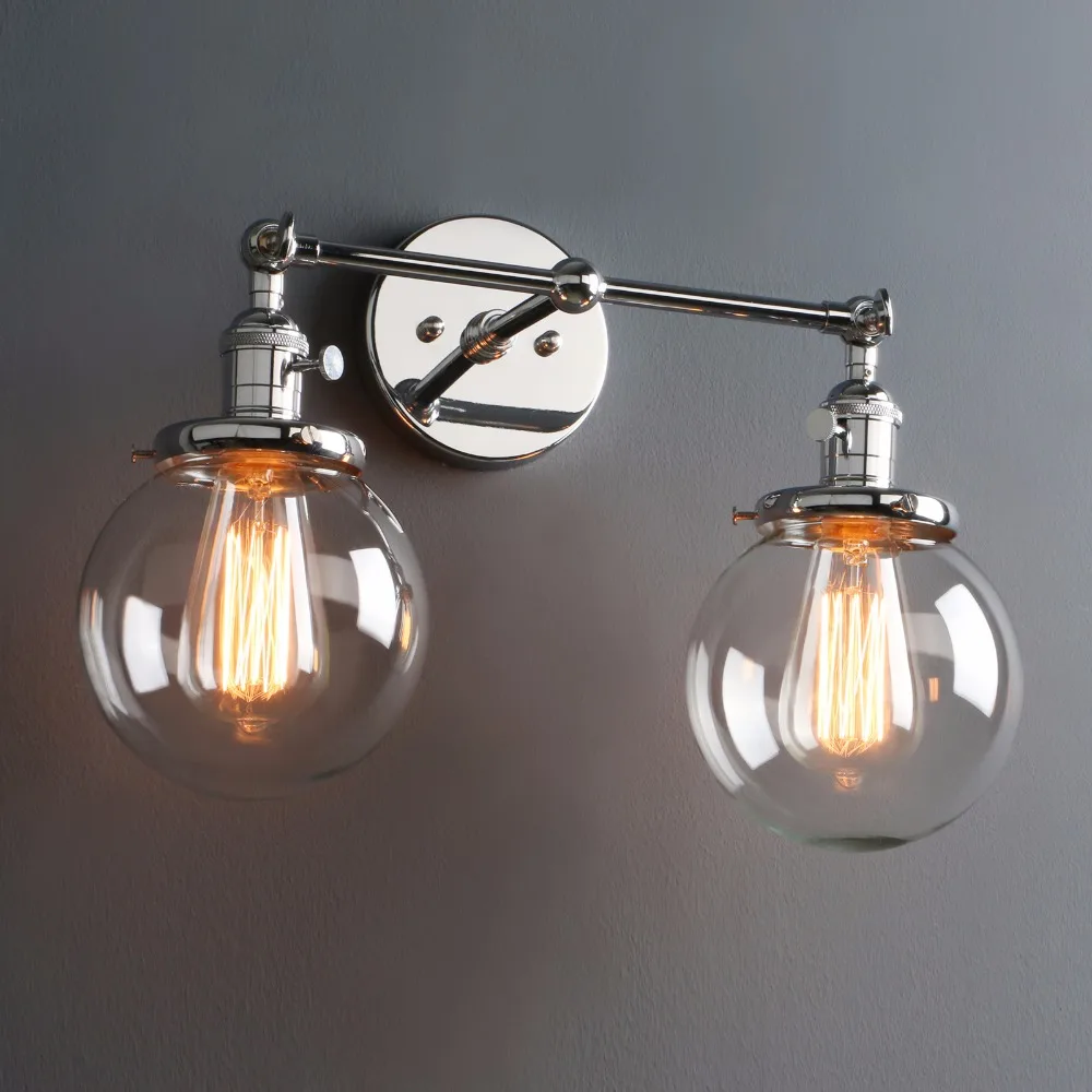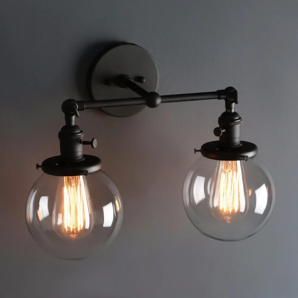 Современный настенные светильники для спальни настенный светильник Permo для лестниц, винтажный настенный светильник с двойными круглыми стеклянными головками 5,9 дюйма, комнатное освещение