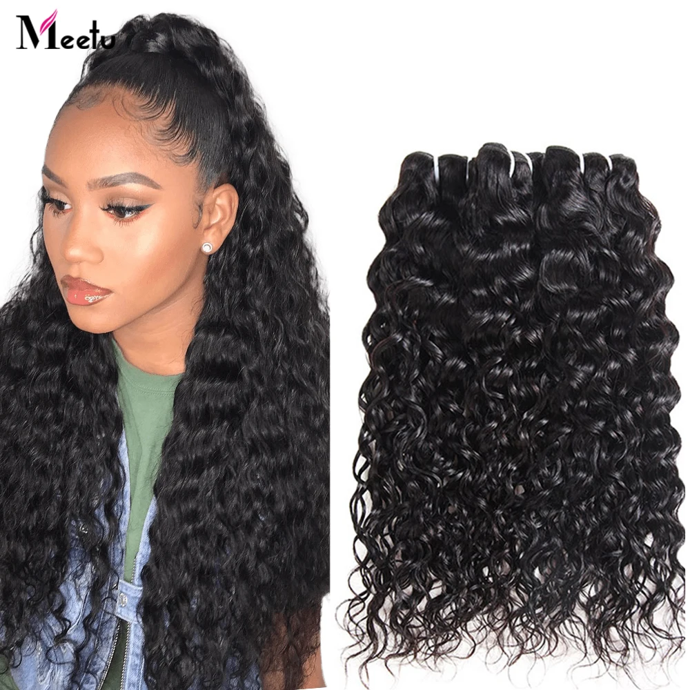 Meetu индийские пучки волнистых волос, натуральные кудрявые пучки волос пряди, натуральный цвет, волосы для наращивания, 1 шт., 3, 4 пряди волос