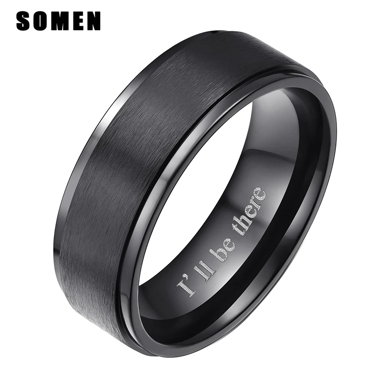 Somen модное 8 мм матовое черное титановое кольцо Обручальное кольц...