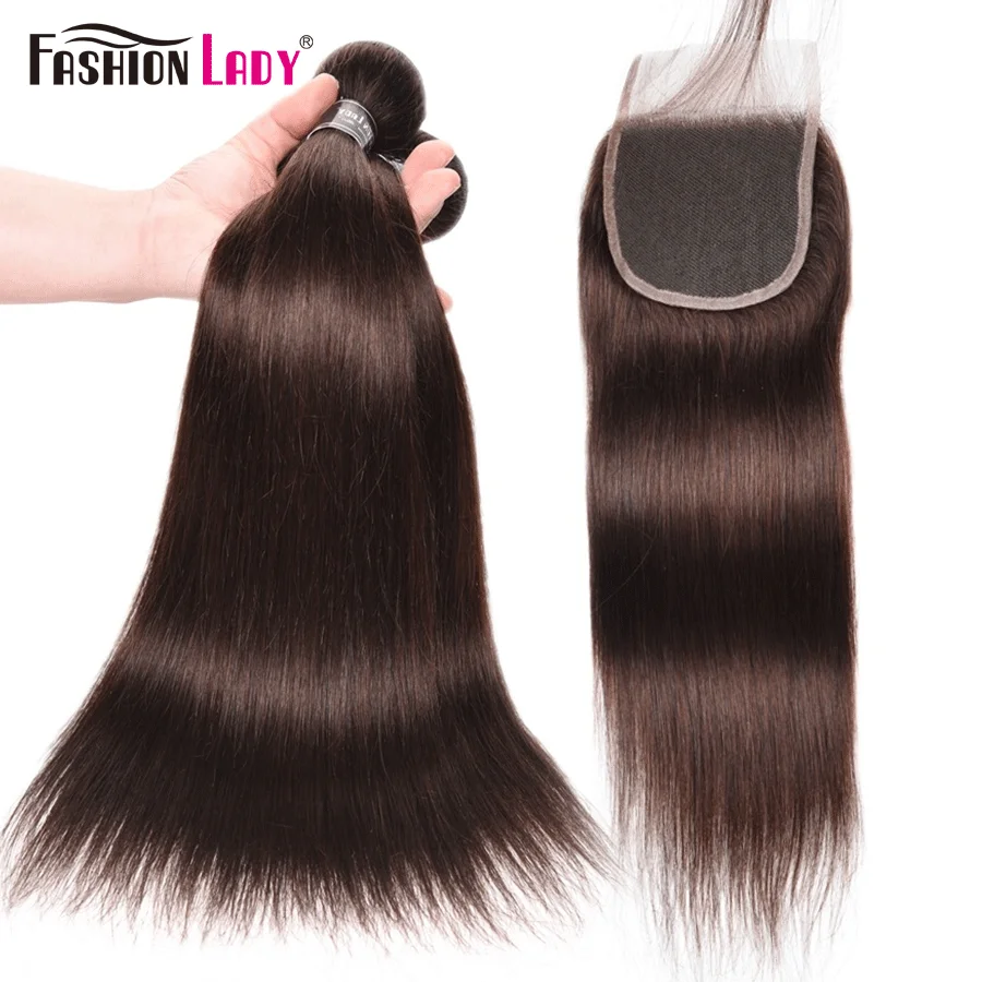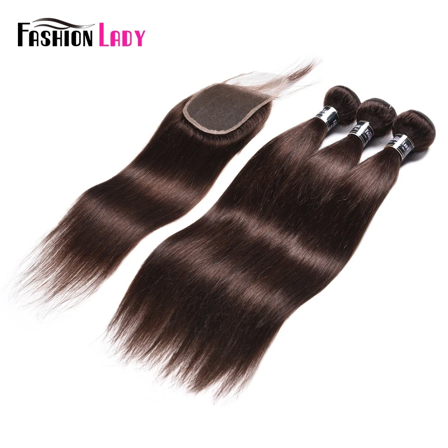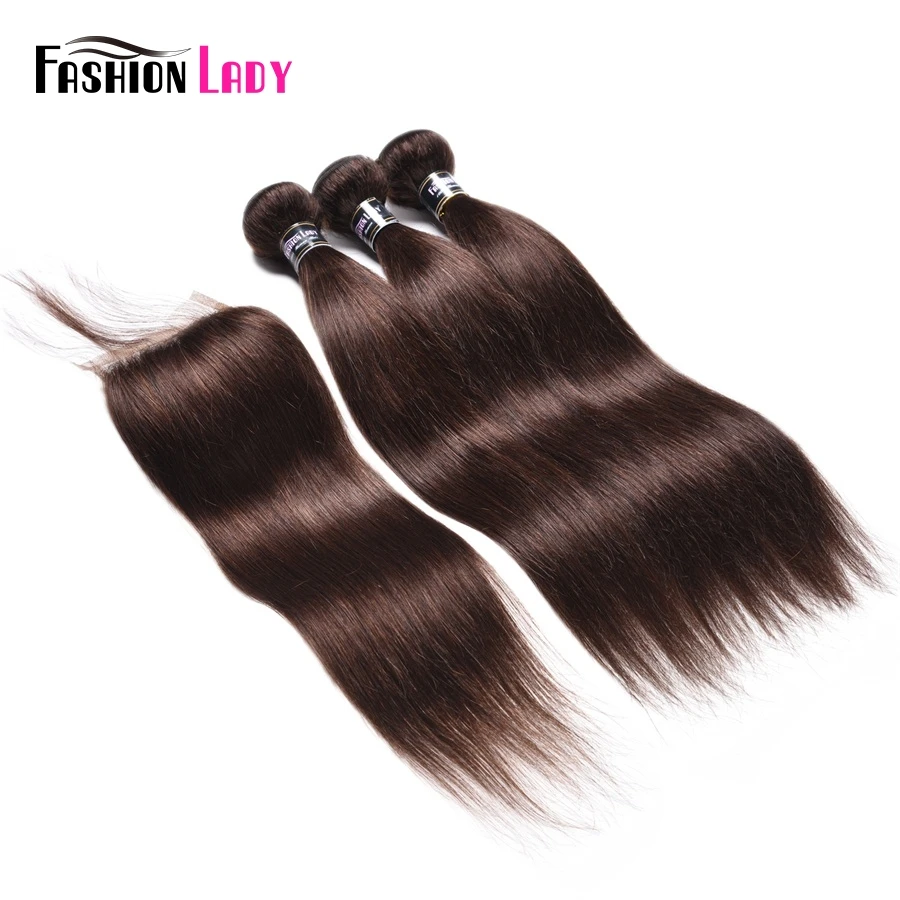 Модные женские, предварительно окрашенные, малазийские, натуральные кудрявые пучки волос, 3 шт., с кружевной застежкой, 2 #, темно-коричневые пряди с застежкой, не Реми