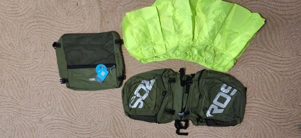 Хорошая сумка, качество материала и прошивки неплохое. Накидку брать в комплекте очень желательно, одевается легко и плотно, в случае дождя незаменимая вещь. Объем вполне достаточный даже для многодневного похода, верхняя сумка дает достаточно места, чтобы положить туда спальник (если в компрессионном мешке, конечно), и еще треть объема сумки остается. Задние сетчатые карманы маленькие, в принципе бутылка 0,5 (не велофляга 0,5) влезает, но если боковые баулы набить достаточно плотно, то уже проблематично. Застежки на багажник несколько удивили, почему-то сзади два ремешка с защелками, по одному на каждую из сторон, а спереди один, хотя по моему мнению как раз важнее прочнее крепить перед, чтобы груз не уезжал назад, но это уже тонкости, да и всегда можно "доработать напильником"