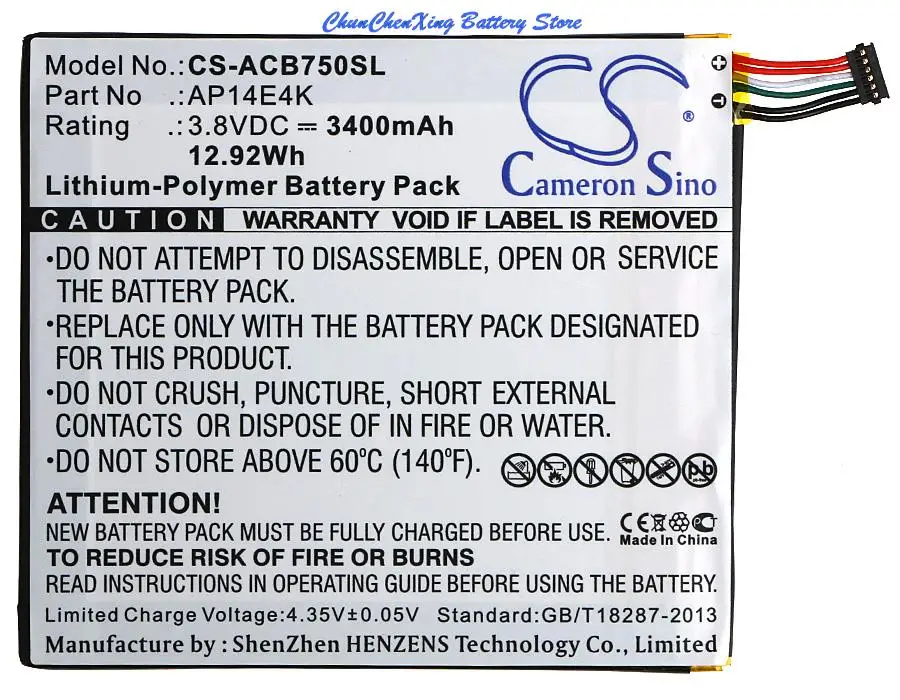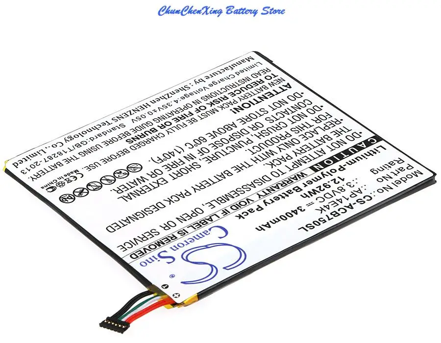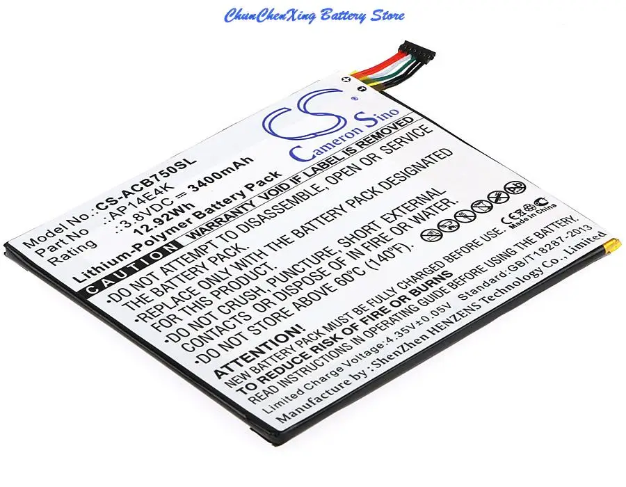 Аккумулятор Cameron Sino 3400mAh AP14E4K, AP14E4K (1ICP48694), KT00104001 для Acer Iconia One 7 B1-750