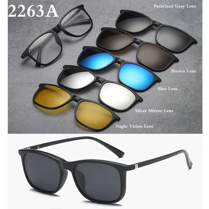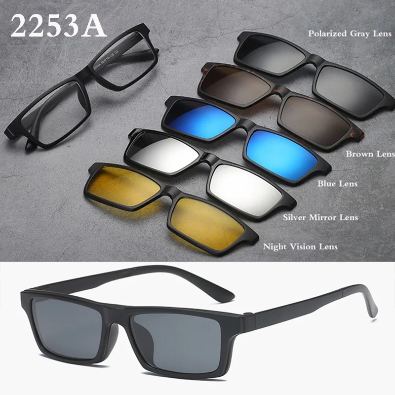 Очки солнцезащитные мужские с 5 зажимами, модная оптическая оправа ...