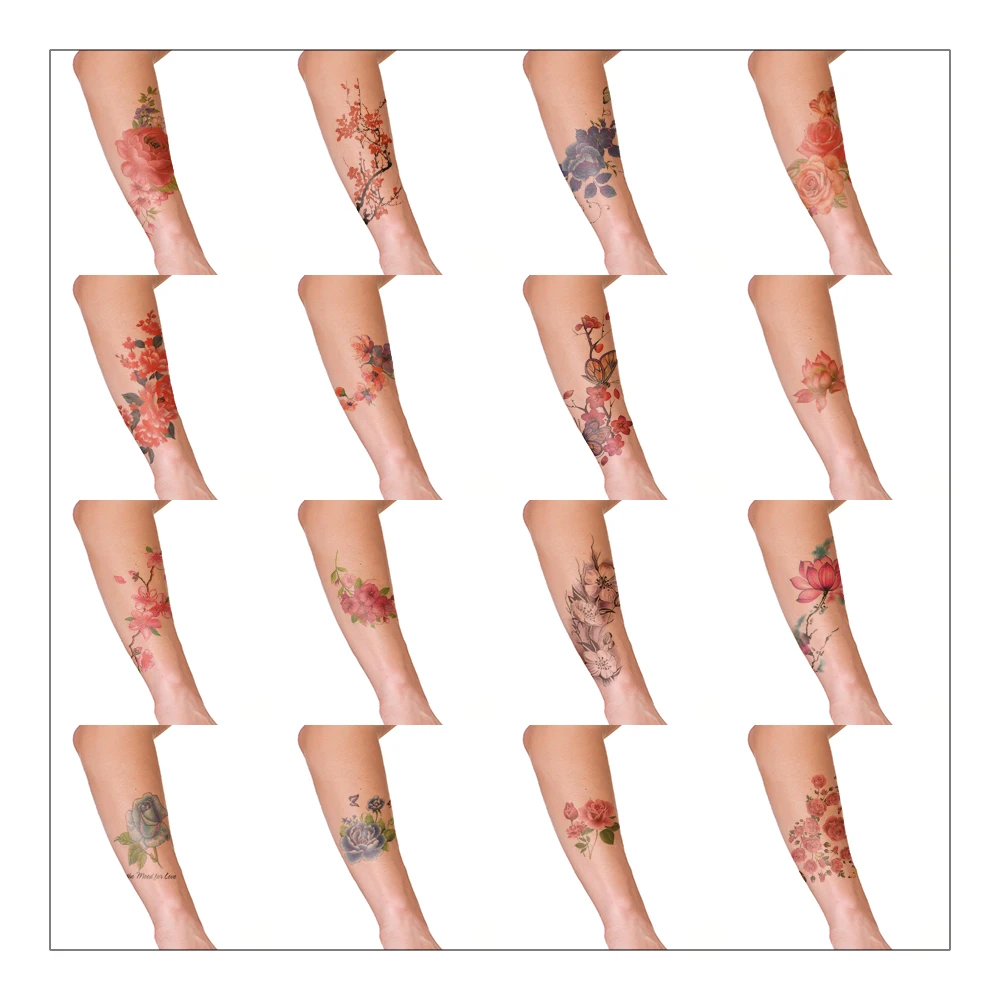 16 шт. Компл., Водонепроницаемые временные поддельные наклейки для тату, перенос воды, боди-арт с цветными цветами для женщин, девушка, красивый сексуальный макияж