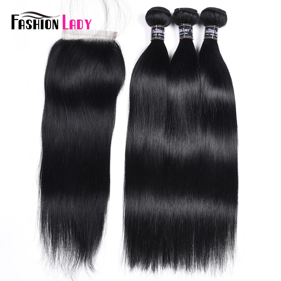 Модные женские предварительно окрашенные бразильские прямые пучки волос с закрытием 3/4 пучки 1 # струйные черные пучки с закрытием не-Реми