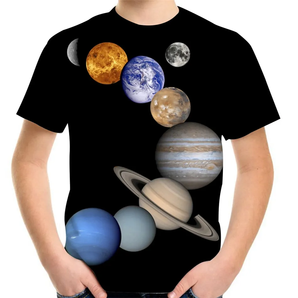 Joyonly 2021 детские черные футболки детские летние топы для девочек и мальчиков футболка с коротким рукавом галактика земля Луна Вселенная детская одежда