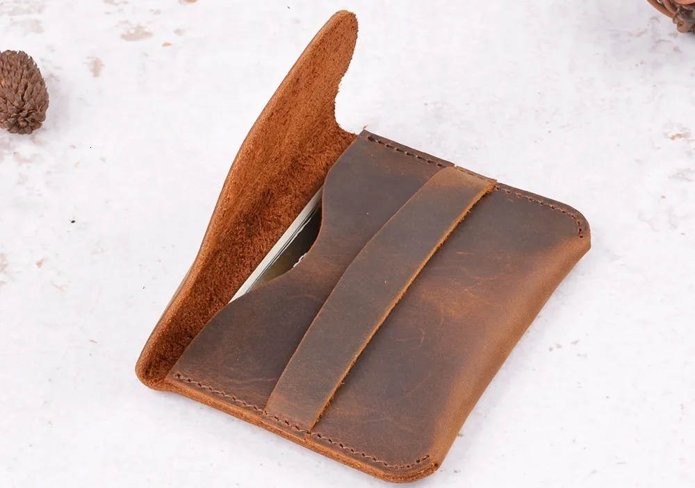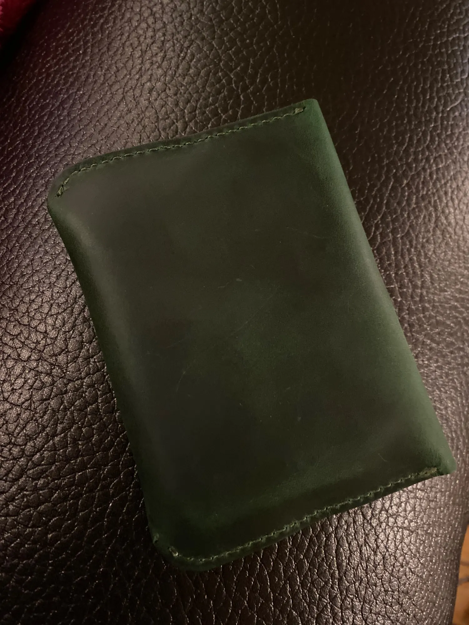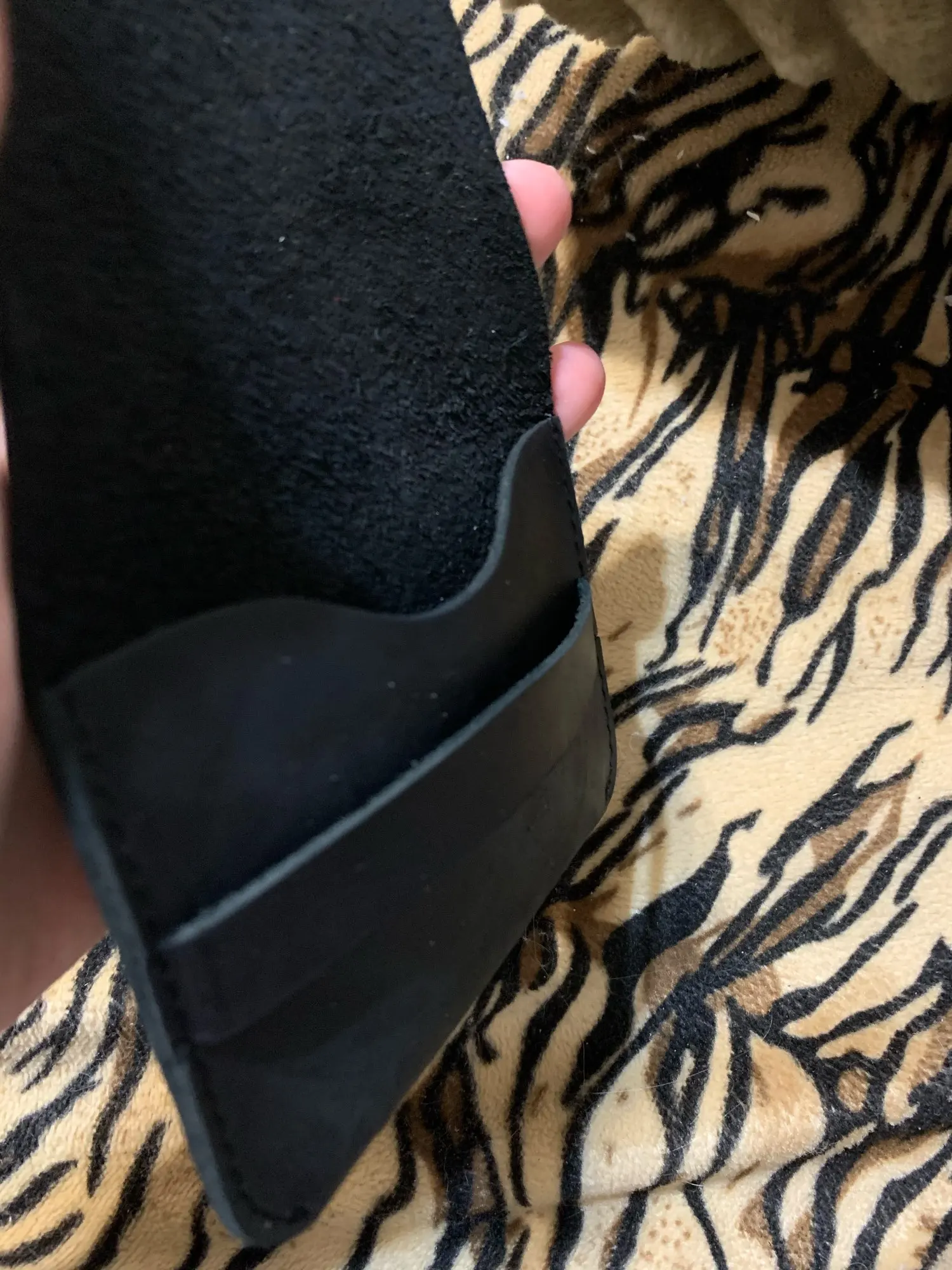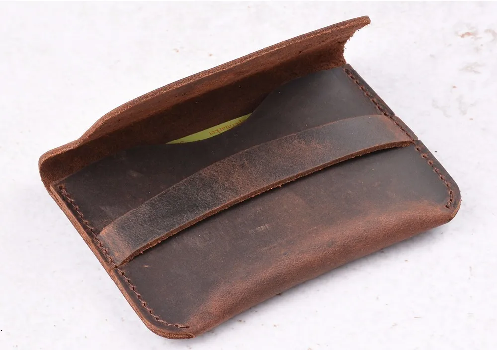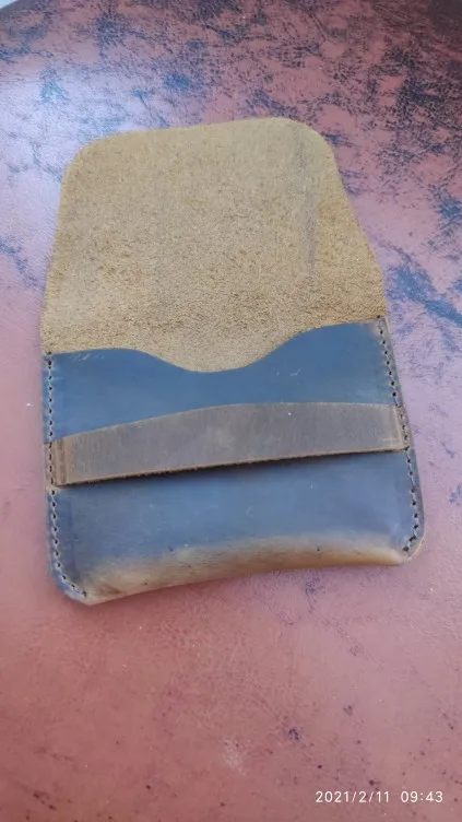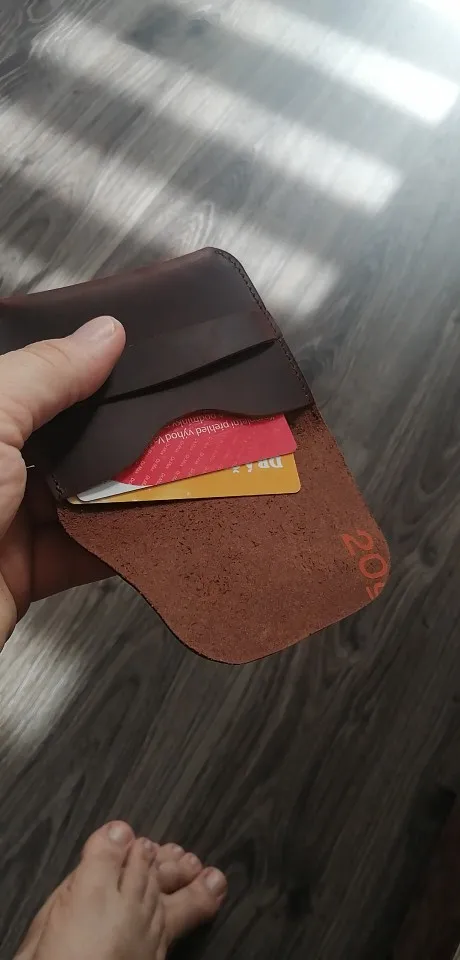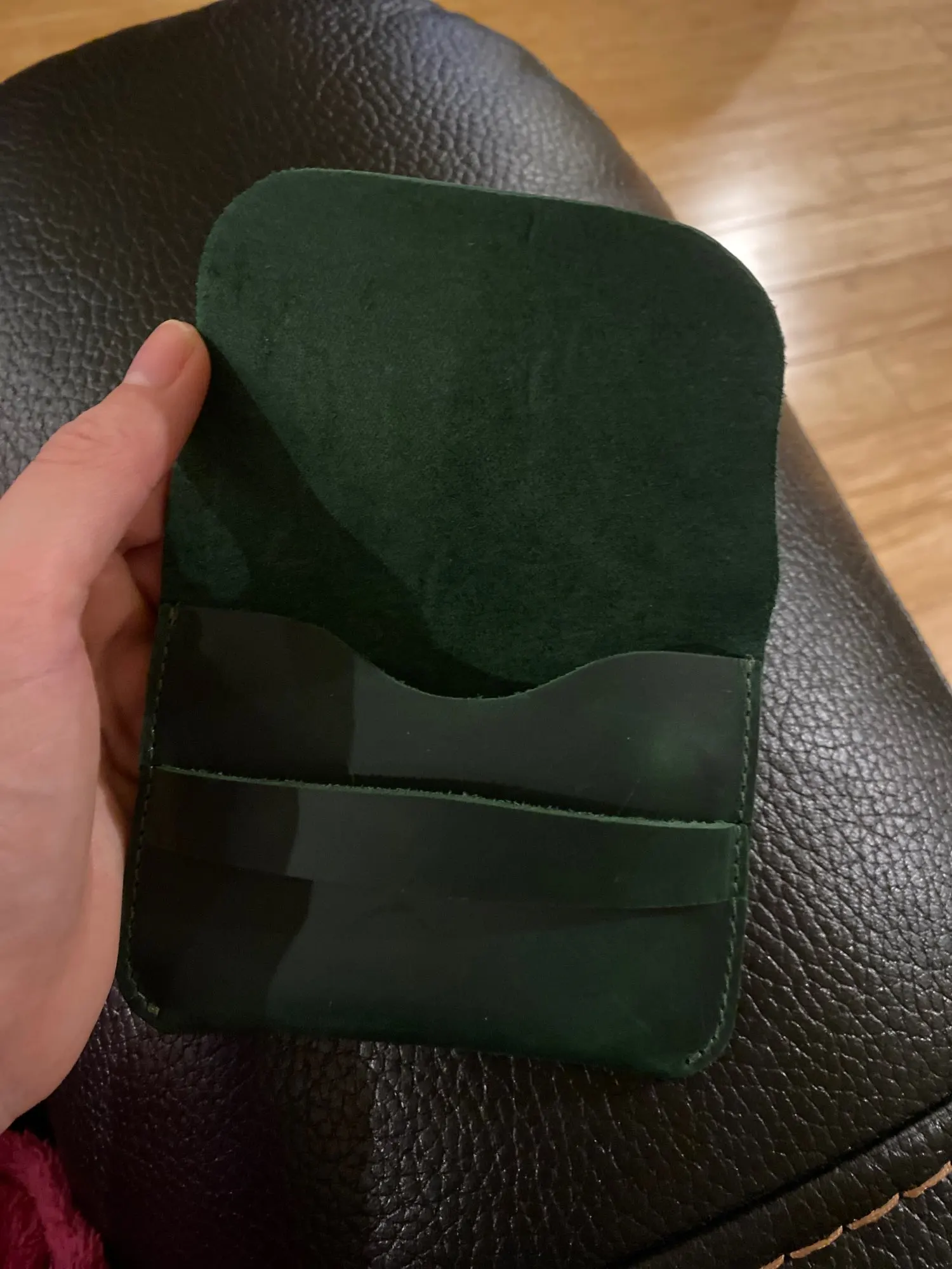 Genuine leather and good size, easy to out cards and coins in, highly recommended!