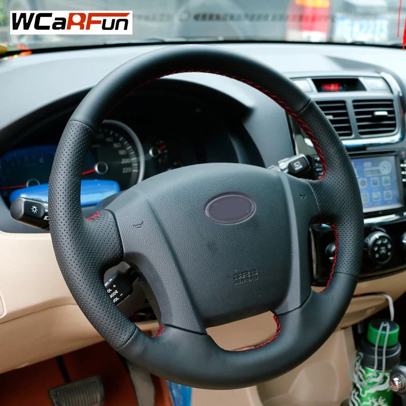 WCaRFun, сшитая вручную черная искусственная кожа Auto чехол рулево...