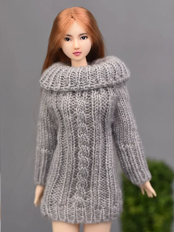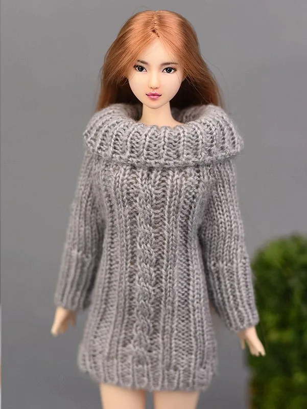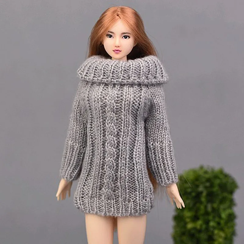 Серый вязаный свитер ручной работы для куклы Барби, одежда, топы, пальто, платье, одежда, подарки для девочек, детская одежда