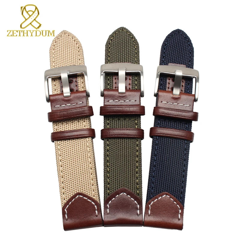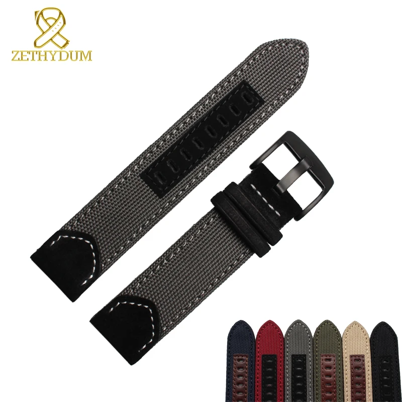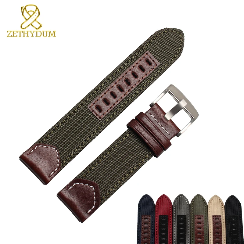 Холст ремешок перлон спортивные часы браслет 20 22 24 мм ремни для наручных часов резиновая подошва натуральная кожа ремешок для часов