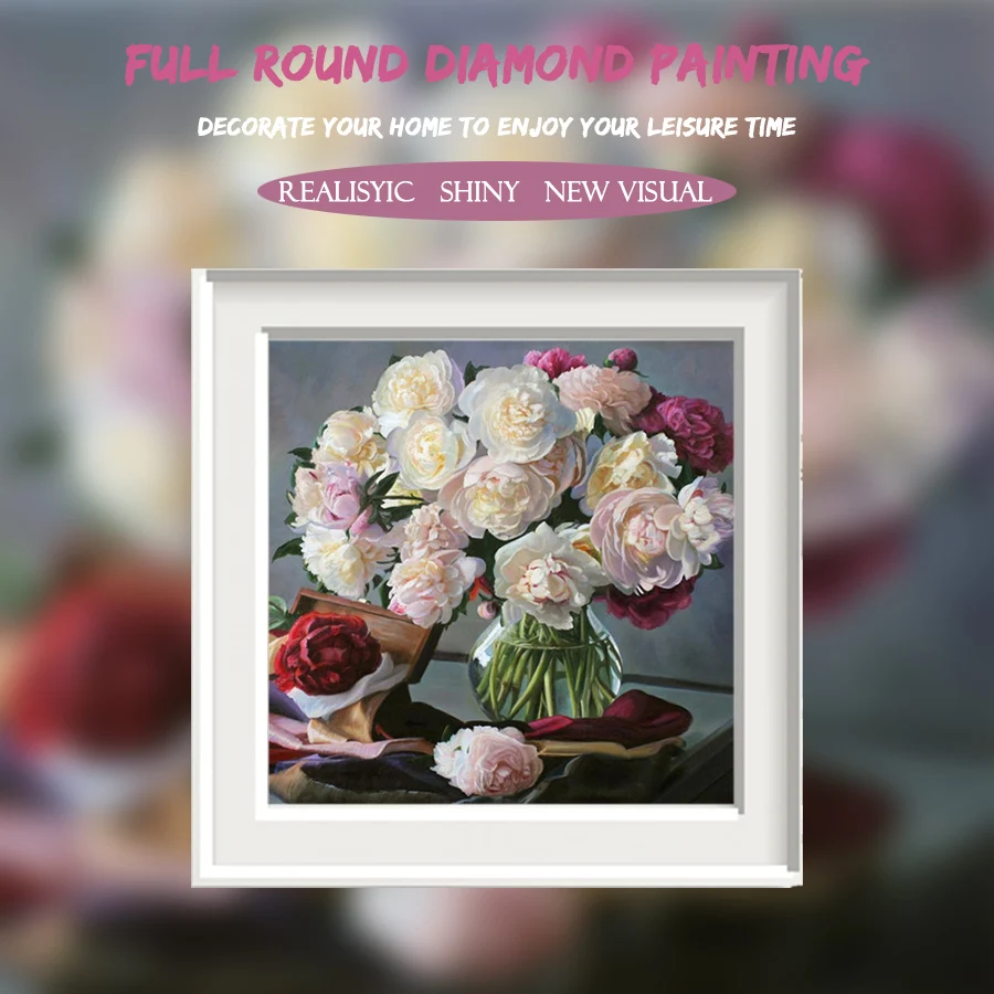 Алмазная живопись "сделай сам", алмазные мозаичные цветы алмазная Вышивка крестиком, домашний декор, круглые тарелки для вазы из смолы