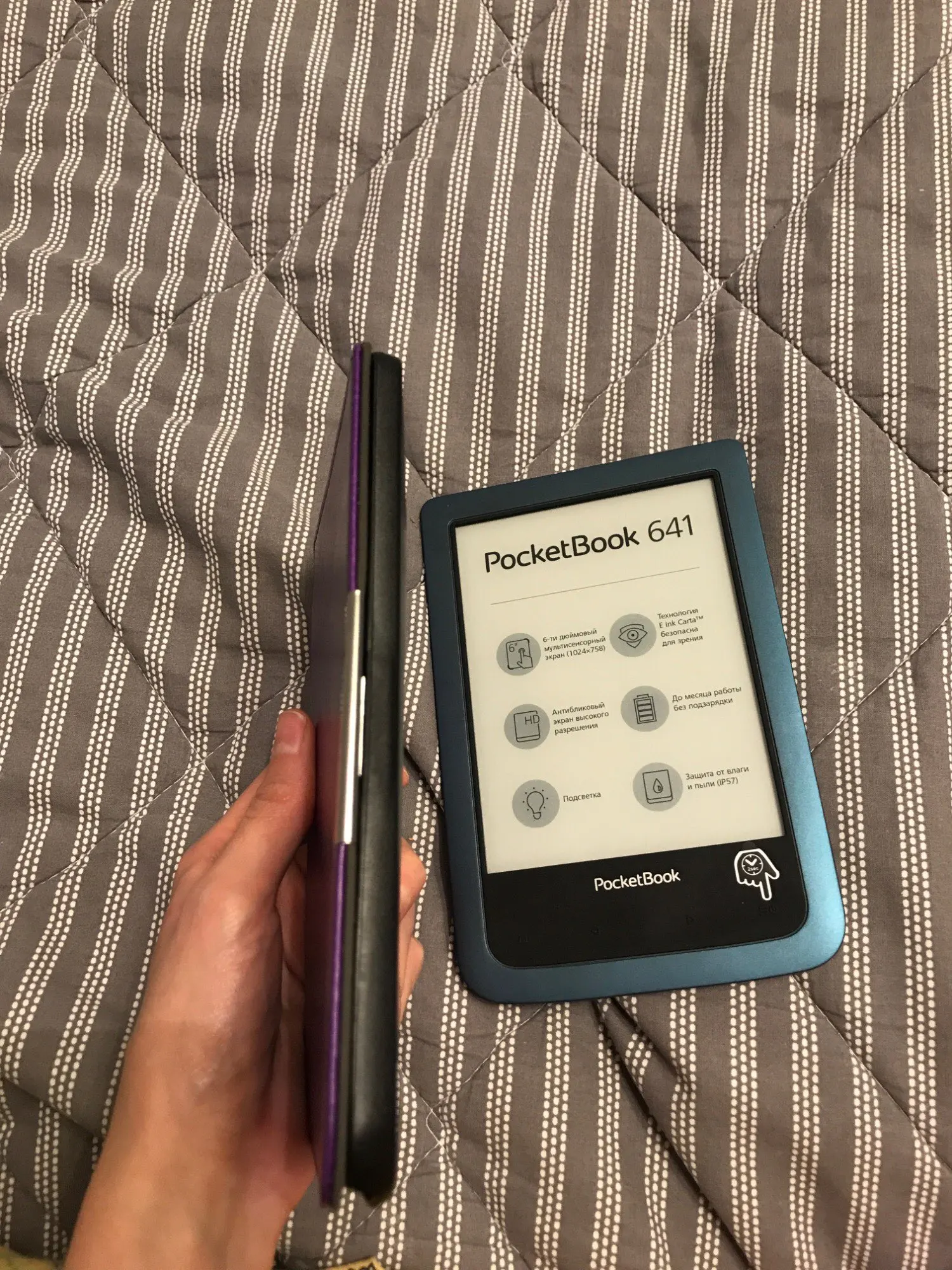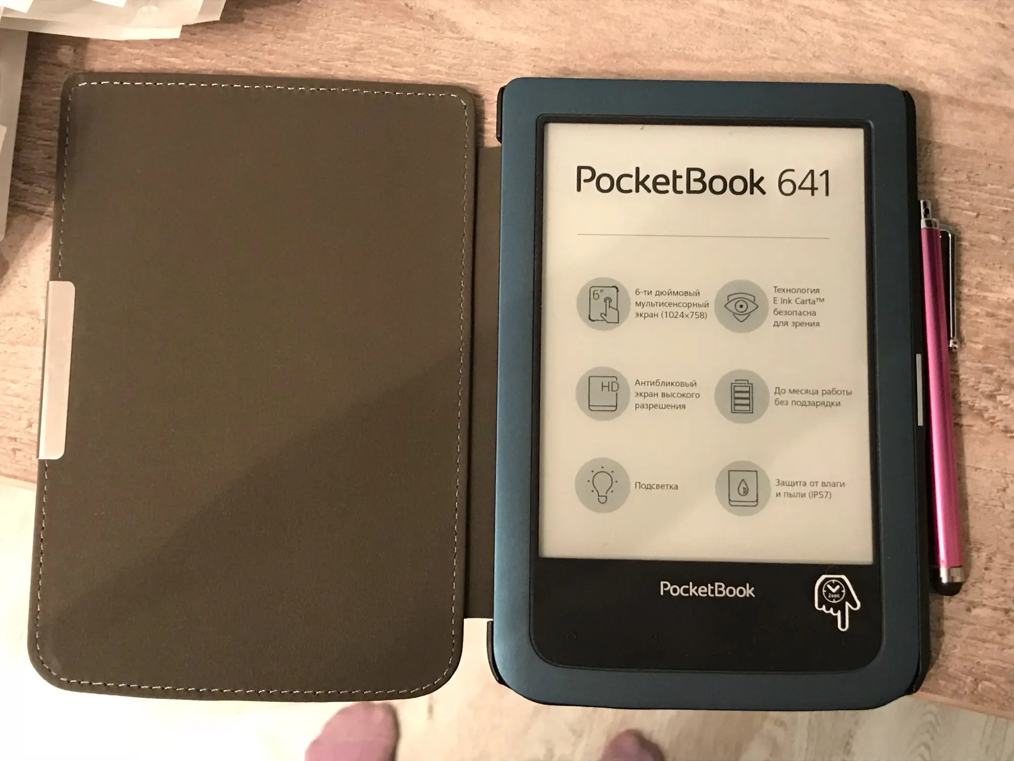 Брала для PB 641 aqua 2 и не посмотрела, что он не подходит (давно лежал в корзине, и видимо теперь убрали мою модель из описания). Чехол сидит не плотно, не закрывается на магнит, но для меня не критично, я читалку не таскаю никуда, читаю только дома. До московской области за 3 недели дошёл. Сделан качественно.