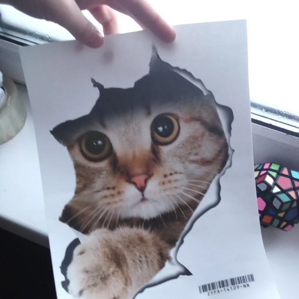 Отличная наклейка. Котенок такой же живой. Быстрая доставка, соответственно защищена. Спасибо за ваше приятное дополнение. Рекомендуется.