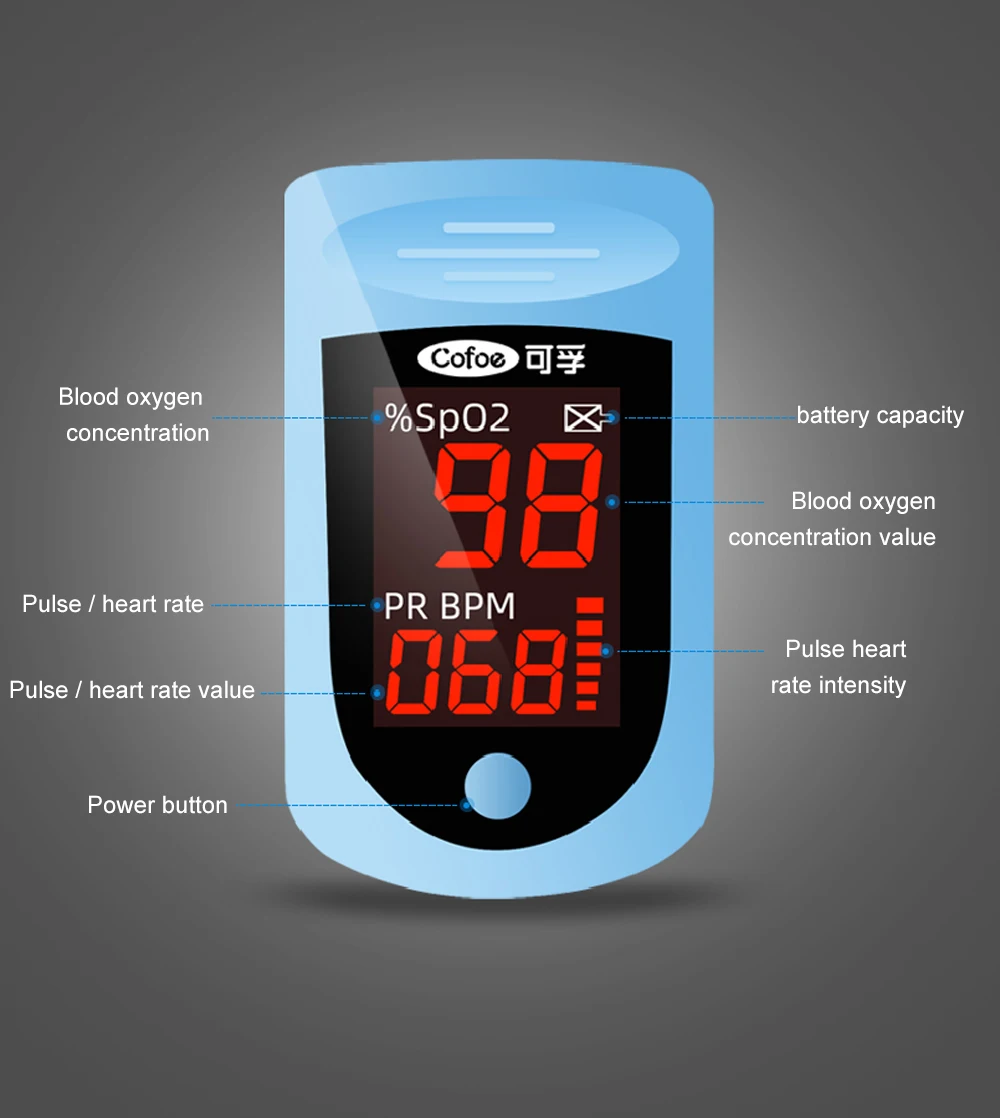 Светодиодный Пульсоксиметр Cofoe O, измеритель пульса и уровня кисл...