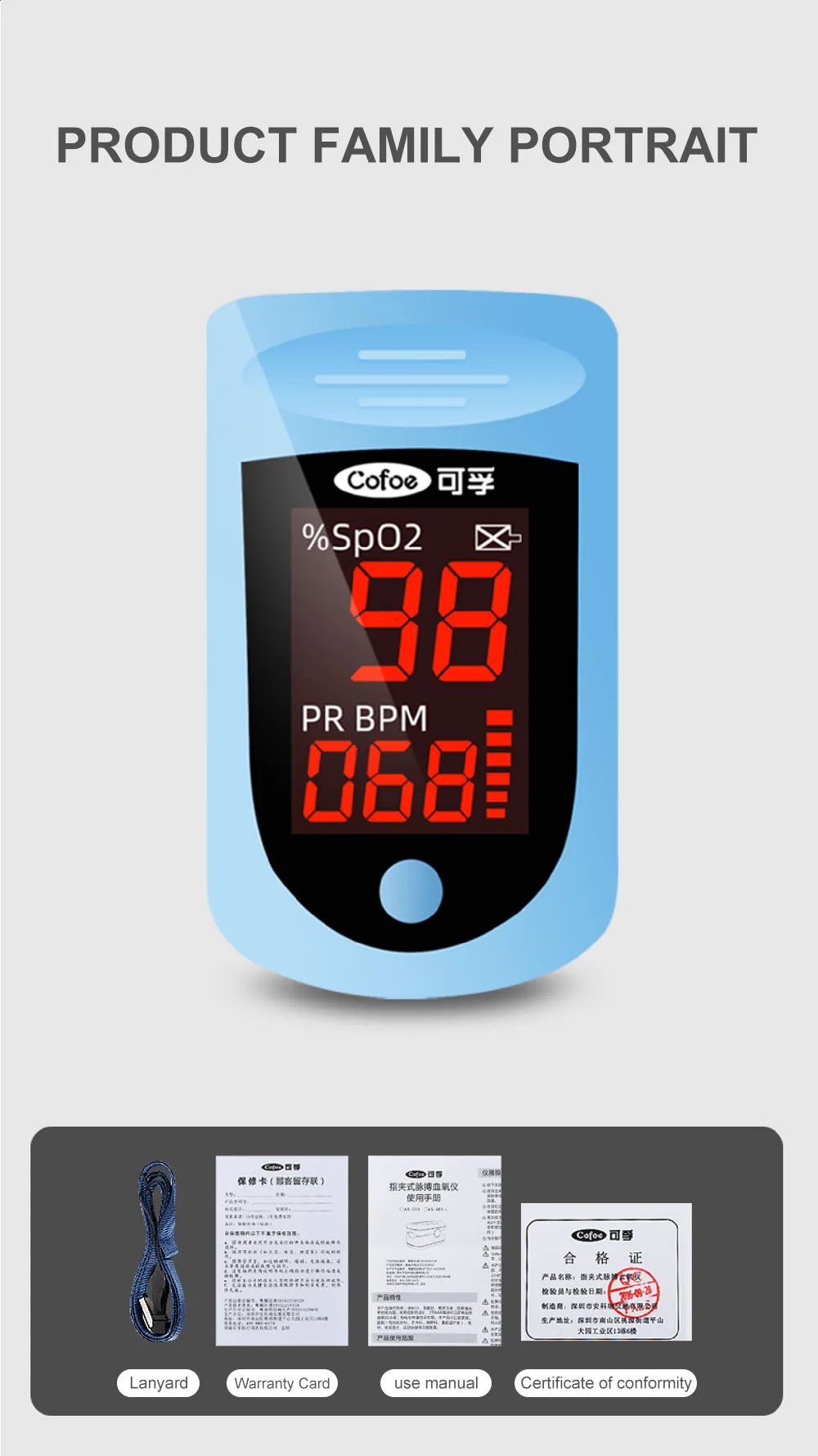 Cofoe Finger Пульсоксиметр Портативный измеритель кислорода в крови...