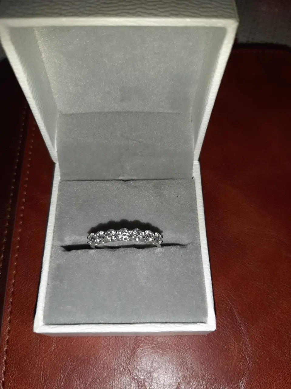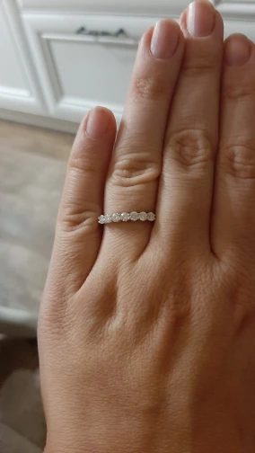 отправка была долгой, писала продавцу, забеспокоившись. мне любезно ответили, просили подождать, я так поняла, что изделие изготавливается индивидуально на заказ. после отправки посылка отслеживалась, дошла всего за неделю, на границе потребовалось оплатить пошлину в размере 436 рублей и ввести ИНН, все это легко сделать он лайн через приложение почты. само кольцо замечательное, как на фото один в один, блеск, камни, переживала, что будут желтоватые камни, но они выглядят один в один, как мой бриллиант из санлайта (не удивлюсь, если их брюлики "со скидками" это муассаниты из Китая) упаковка хорошая. единственное, размер решила почему-то в последний момент взять побольше, и зря, берите размер в размер(таблицу соответствия погуглите),модель кольца широкая, камешки по бокам для меня чувствуются, может с непривычки, но кольцо планирую носить на постоянной основе, не на выход, поэтому стоило взять в размер, а то широковато слегка. к покупке однозначно рекомендую и изделие и продавца.
