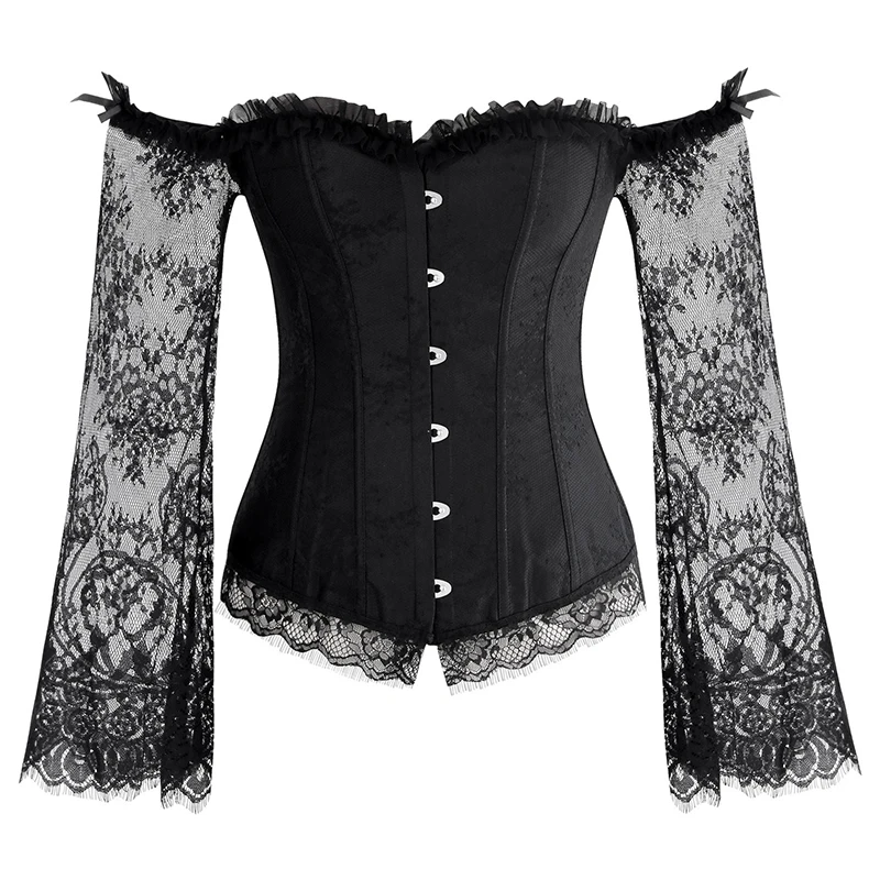 Корсет в стиле стимпанк, готический корсет, женское Бюстье с длинными рукавами, кружевной Цветочный корсет с открытыми плечами, пиканвечерние вечерний корсет