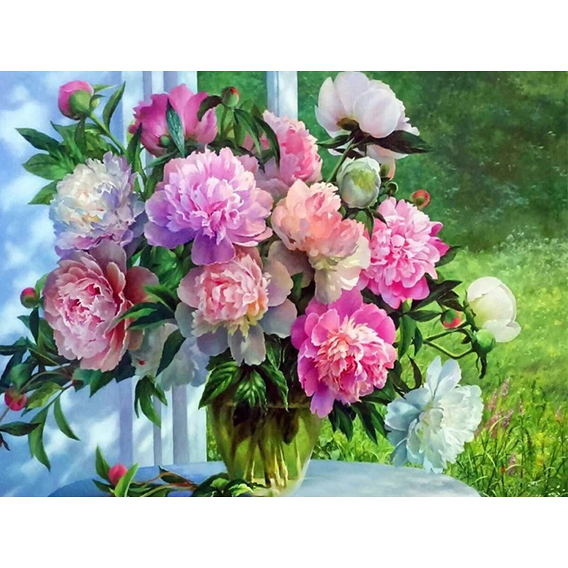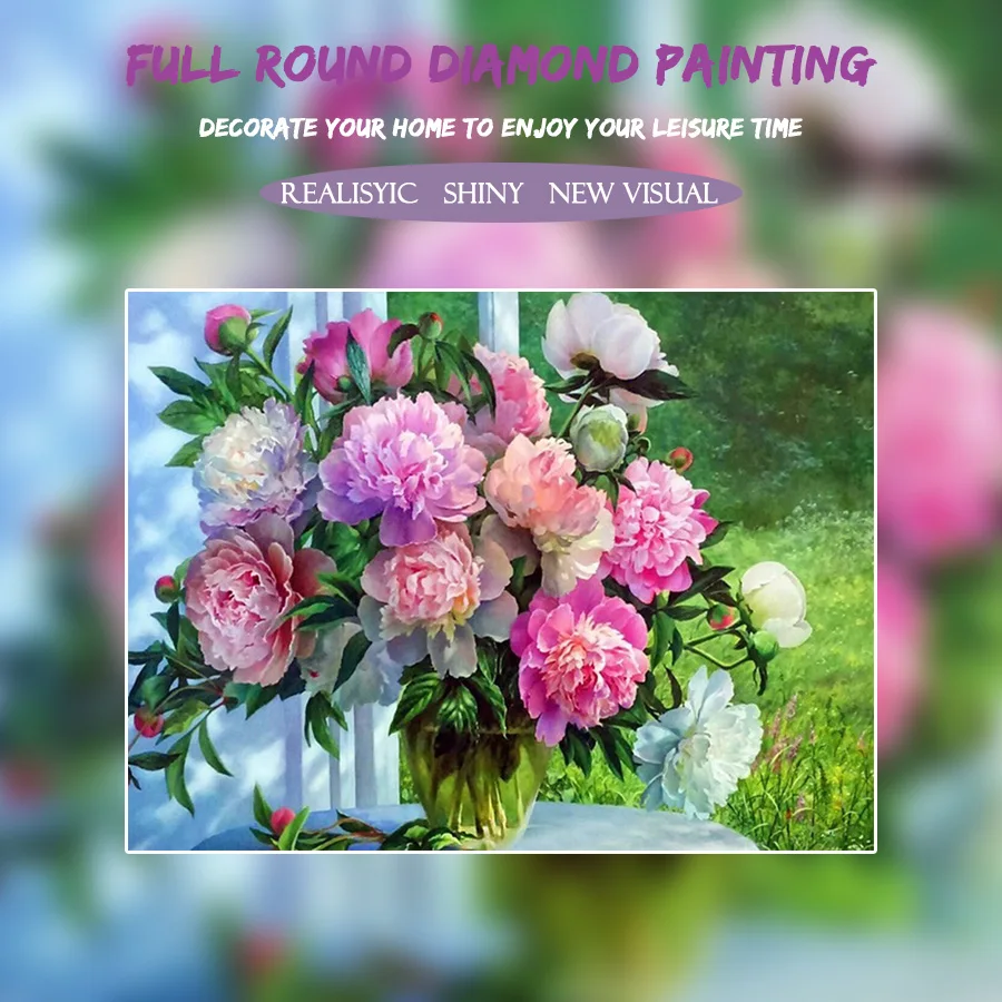 Алмазная живопись "Пионы", 3D алмазная живопись, круглые стразы, алмазная живопись, Вышивка цветов, 100% г.