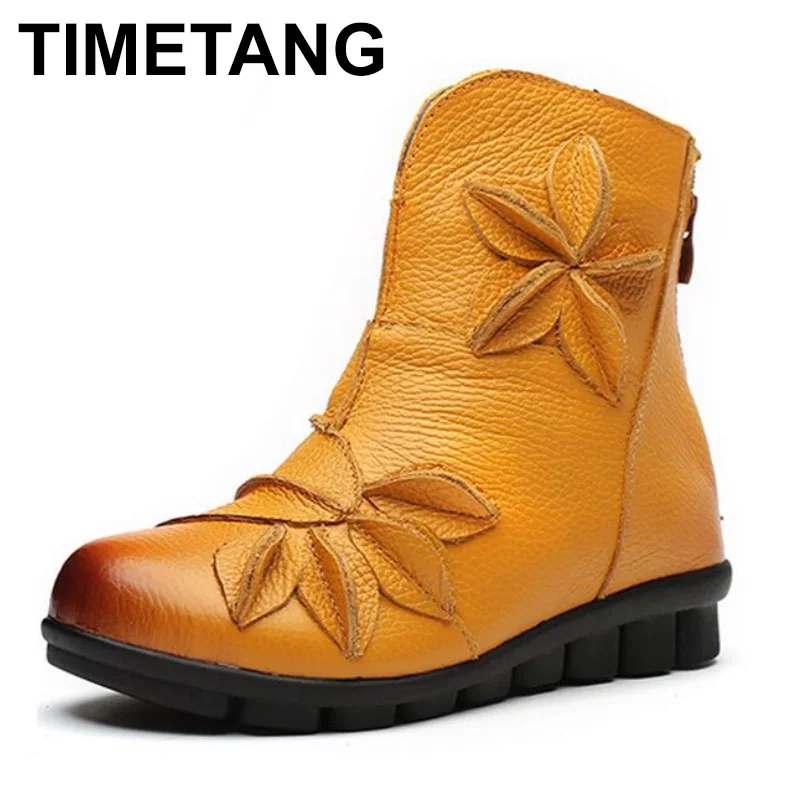 Ботинки женские из натуральной кожи, на плоской подошве, на осеньзиму, большие размеры, C307