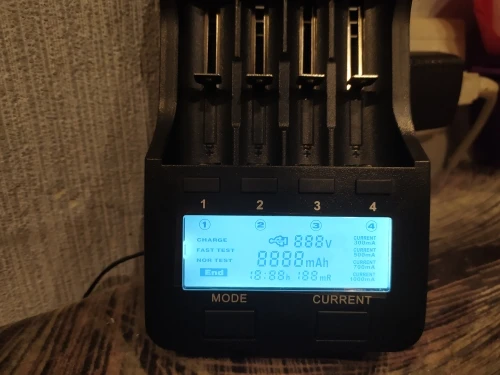 крутой зарядник на 4 тока: 300,500,700,1000 ма, умеет определять ёмкость быстро и полной разрядкой, пришел за 2 недели, однозначно рекомендую