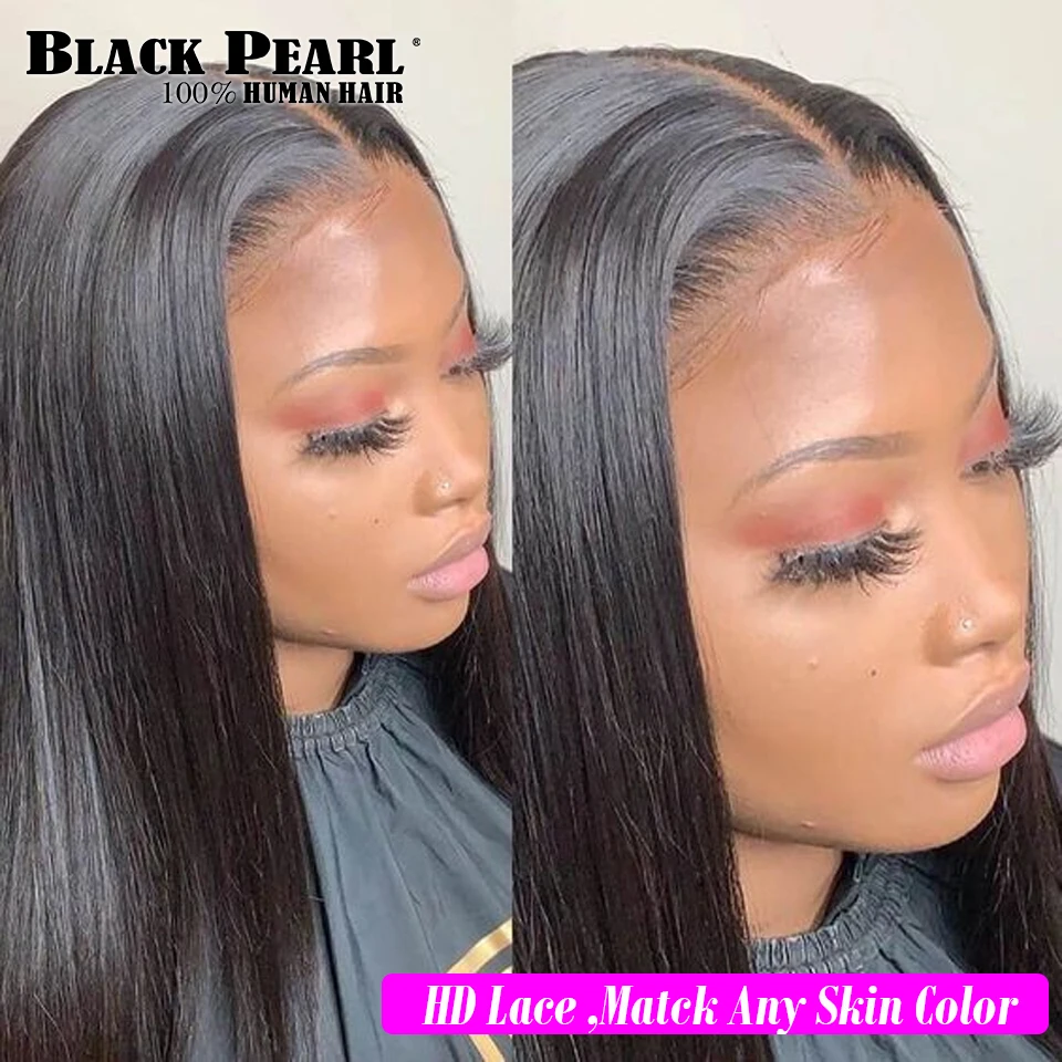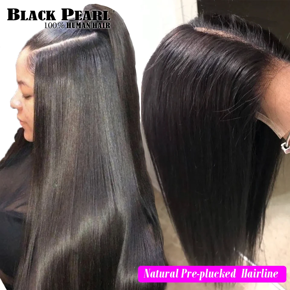 Черные перламутровые кружевные передние человеческие волосы, парики бразильские Remy прямые 4x4 кружевные передние парики человеческих волос для чернокожих женщин