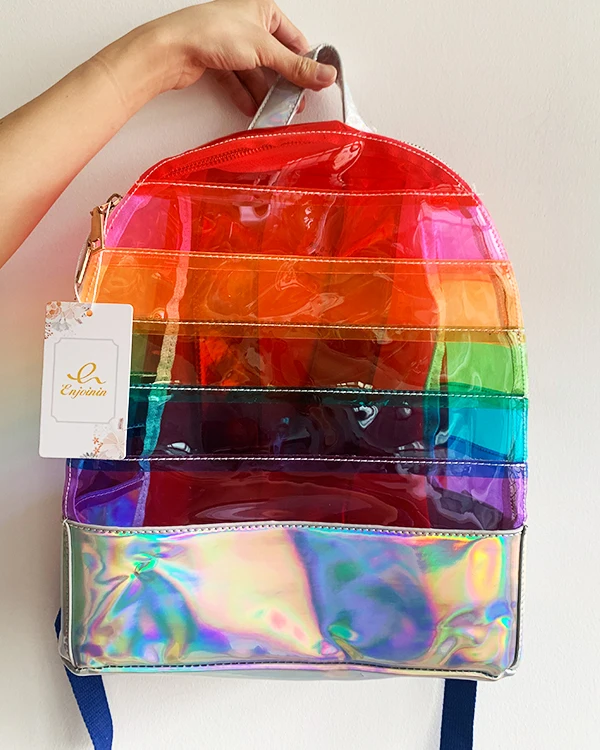 Радужный прозрачный летний рюкзак, женская модная прозрачная сумка ...