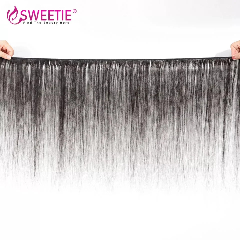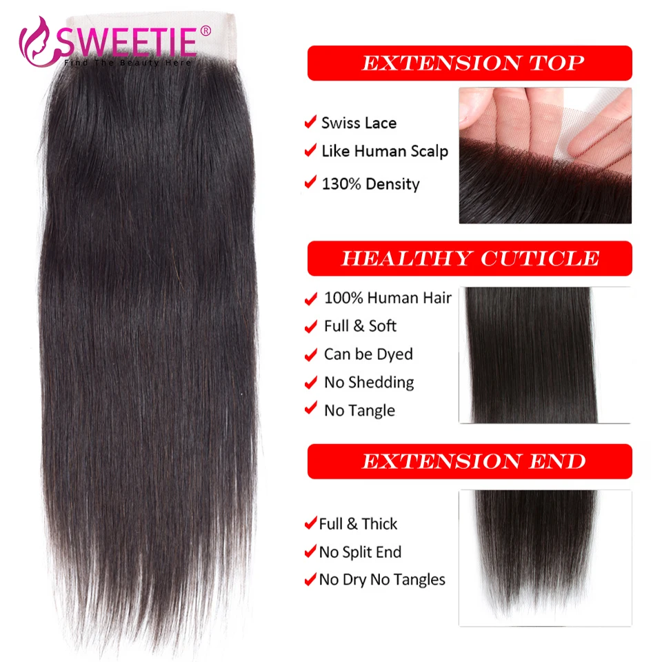 Сладкие волосы бразильские волосы пучки прямые с закрытием 100% человеческие волосы 3 пучка с кружевом Закрытие бесплатная часть не реми волосы