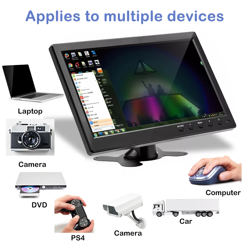 Монитор для ПК Podofo, 10,1 дюйма, HD, 2 канала, видеовход, портативный монитор безопасности с динамиком, HDMI, VGA