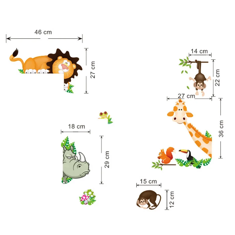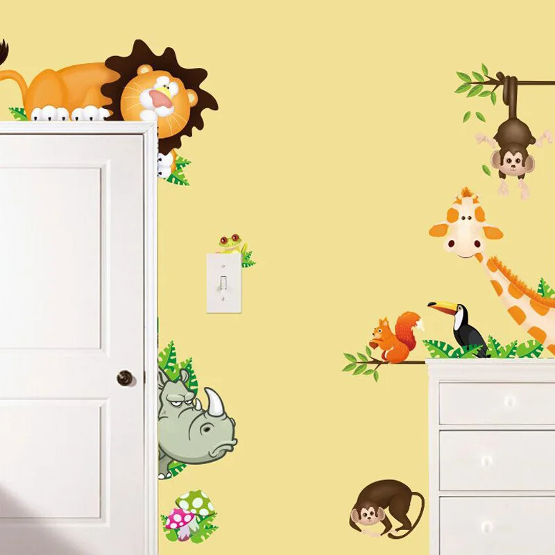 Настенный стикер для детской комнаты с изображением жирафа, обезьяны, Льва, животных