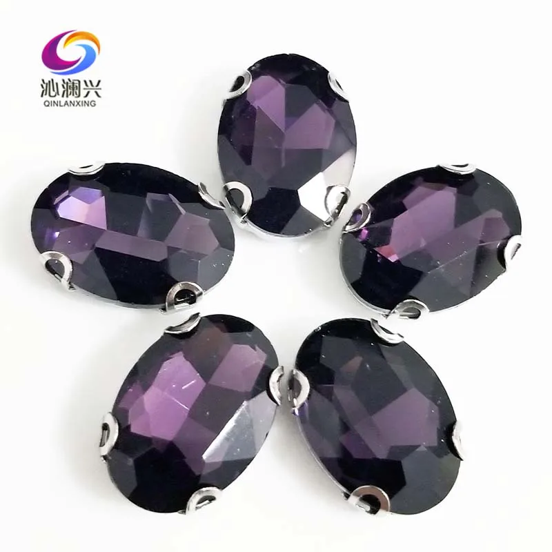 Темно-фиолетовые стразы овальной формы с кристаллами, Пришивные в форме D, анти-крюк, коготь, стразы с отверстиями, Diyаксессуары для одежды SWTD16