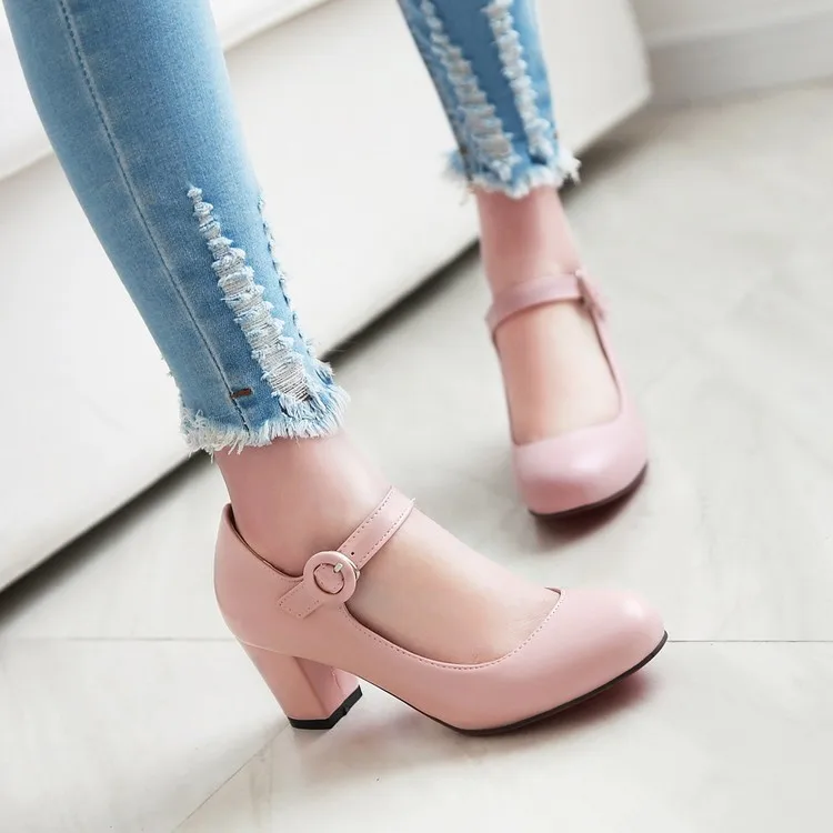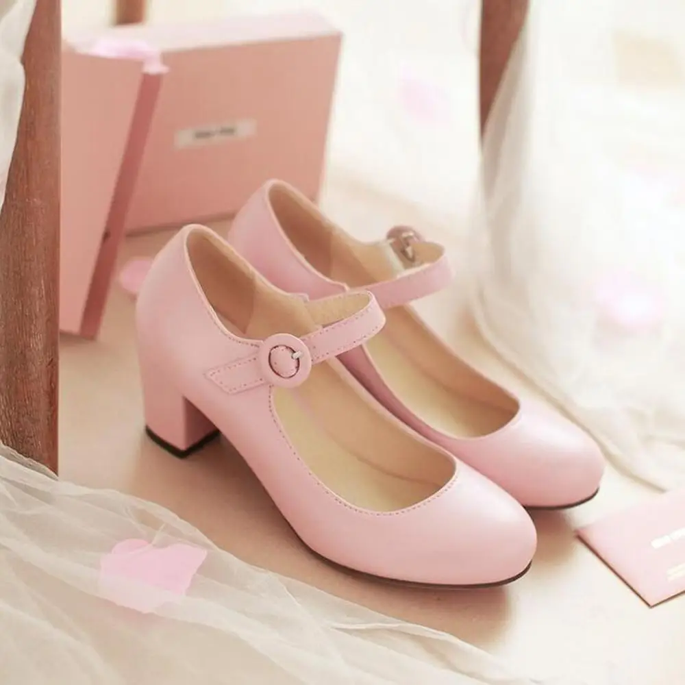 Женские Туфли Мэри Джейн, женские туфли с круглым носком на высоком каблуке, белые свадебные туфли, туфли-лодочки на толстом каблуке, женские туфли черного, розового цветов, 2020