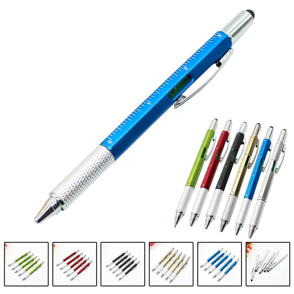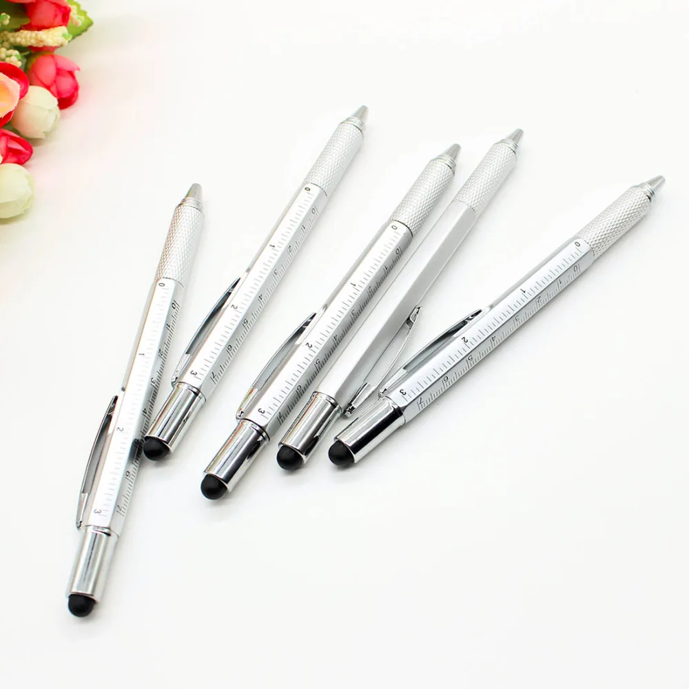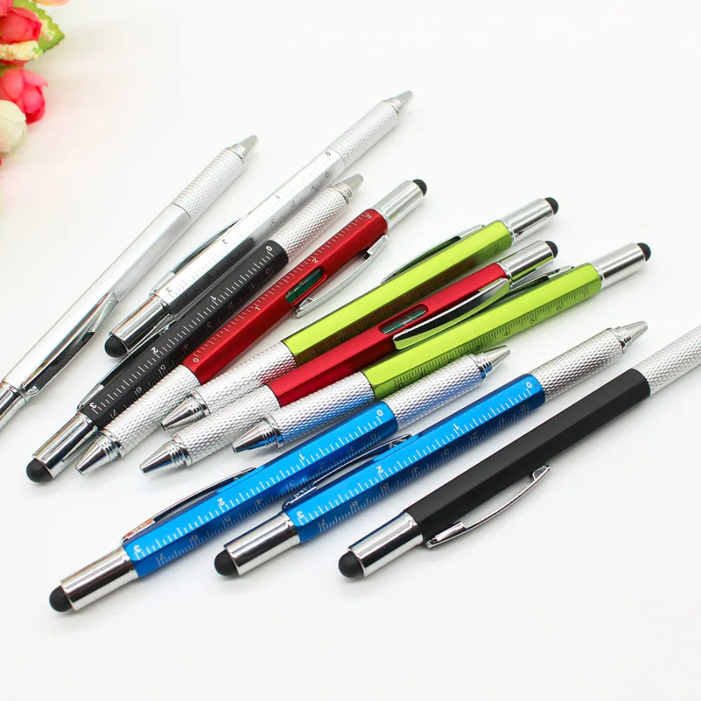 7 в 1 многофункциональная шариковая ручка с современным ручным инструментом, предназначенным для измерения технического линейки, отвертки, стилус для сенсорного экрана