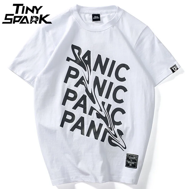 2021 летняя футболка забавная футболка в стиле хип-хоп с коротким рукавом и надписью Panic Повседневные уличные футболки из хлопка, новые модные футболки