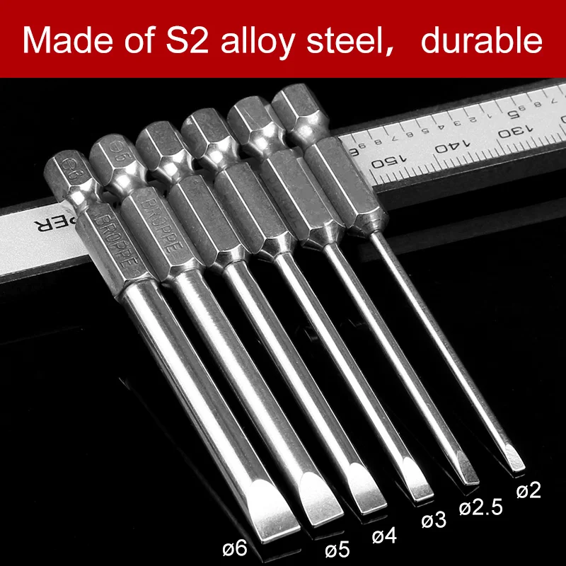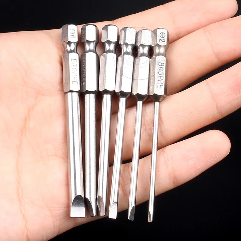 6 шт. 75 мм S2 Стальная шлицевая головка Han Магнитная дрель шлицевая отвертка Набор насадок отвертка Набор отверток импортный материал
