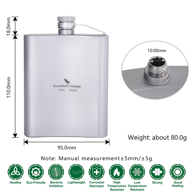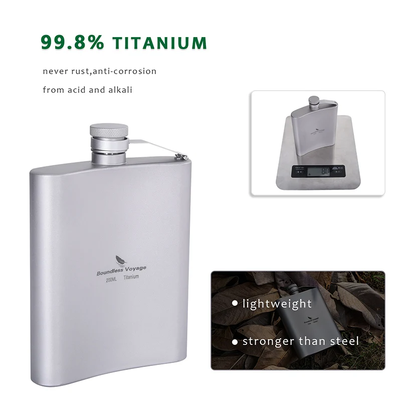 Титановая фляга для кемпинга, альпинизма, спирта, виски, 7 унций200 мл