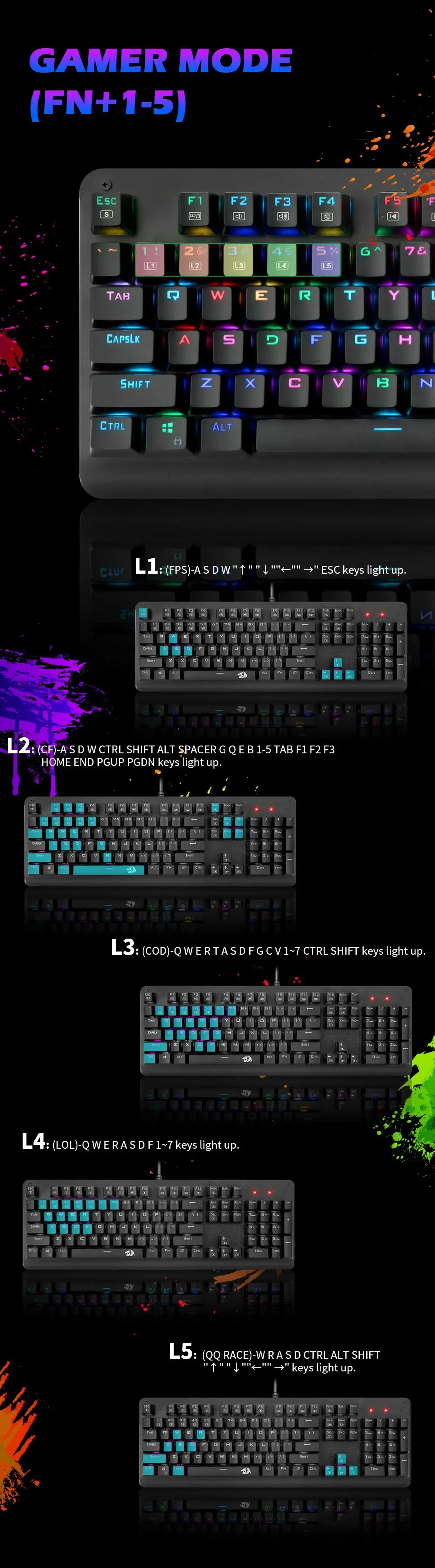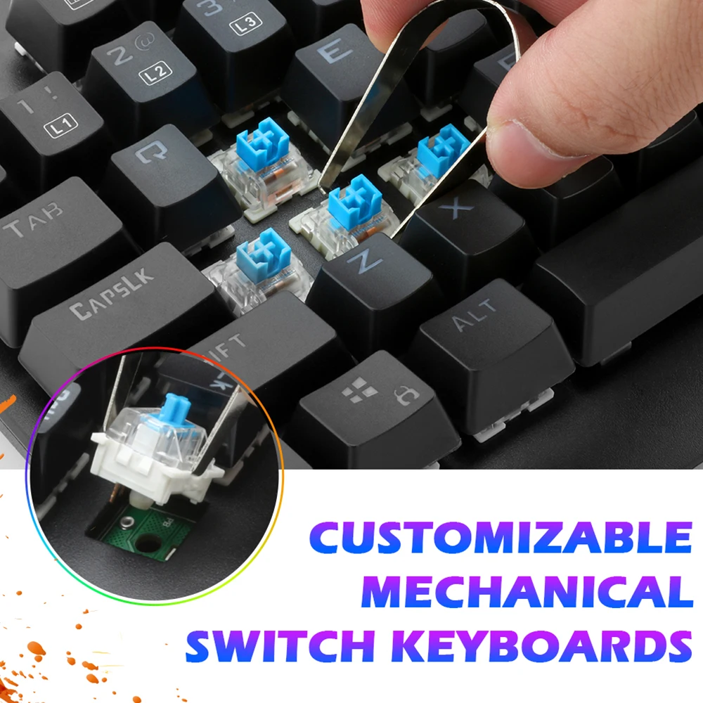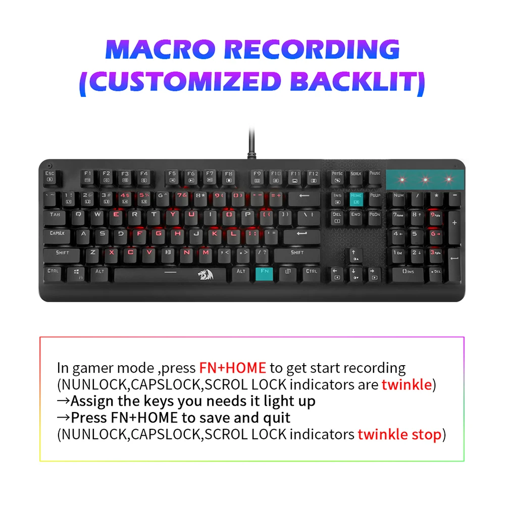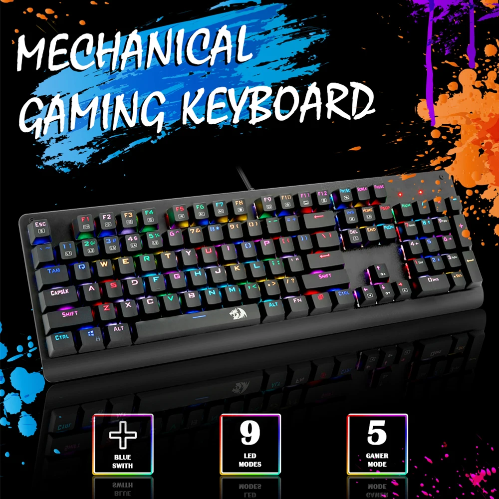 Механическая игровая клавиатура Redragon SANI K581 RGB USB, синий переключатель со светодиодной подсветкой, 104 ключа, проводная, для ПК, компьютерных игр, для России, США