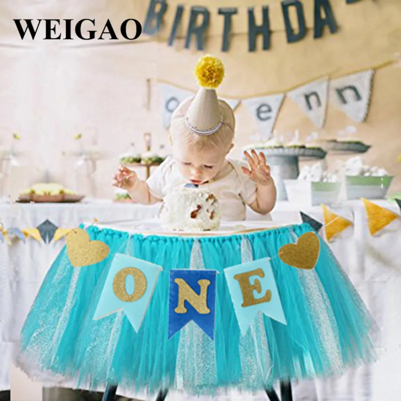 WEIGAO 1 комплект, розовыйсиний, гирлянда один, баннеры, 1 год, украшение на день рождения ребенка, украшения для душа