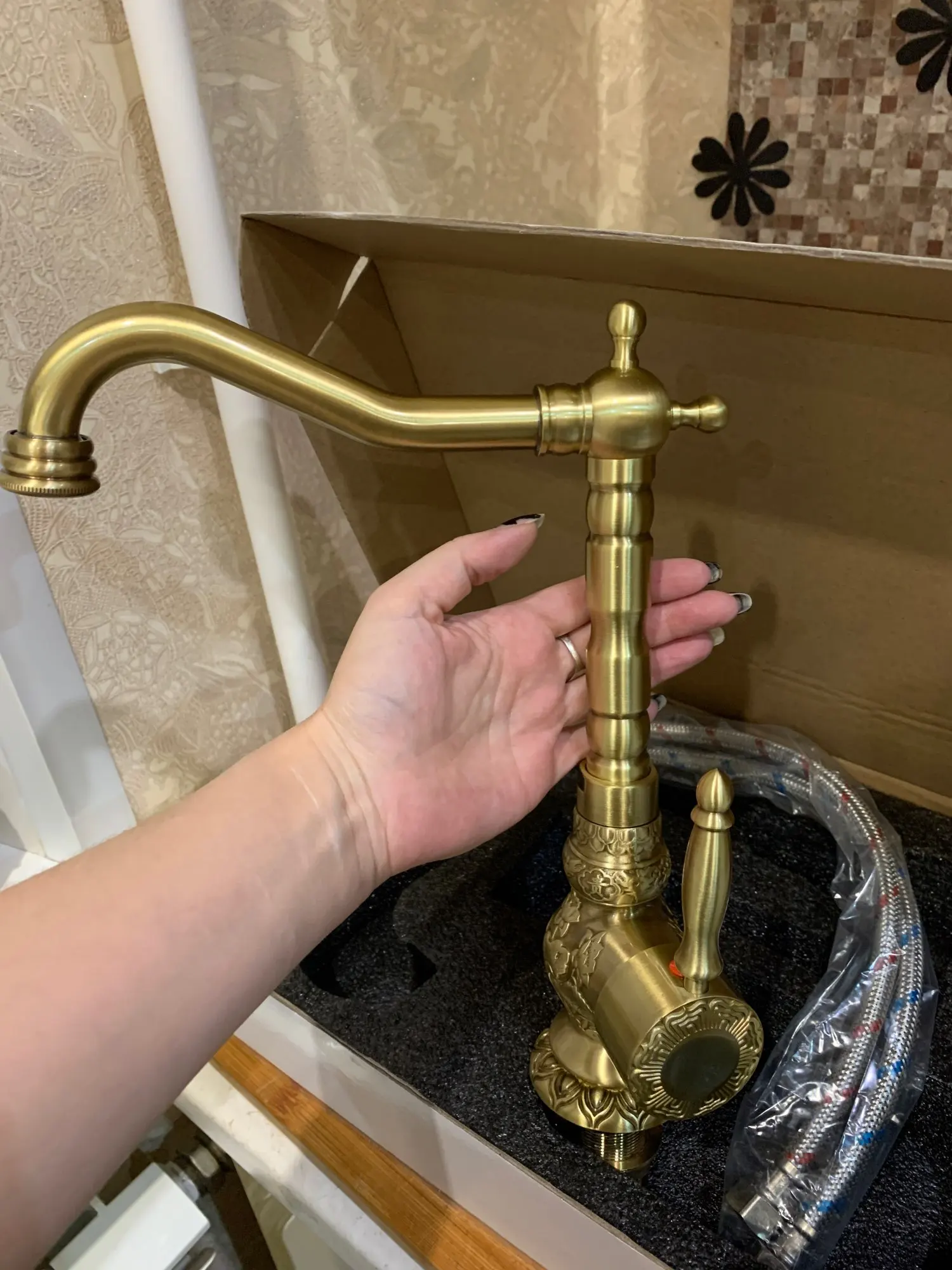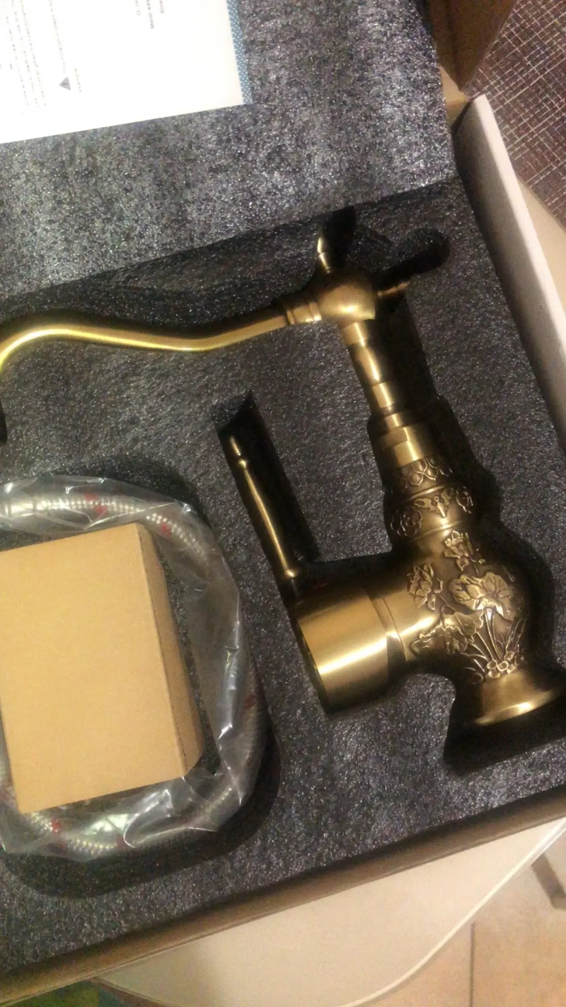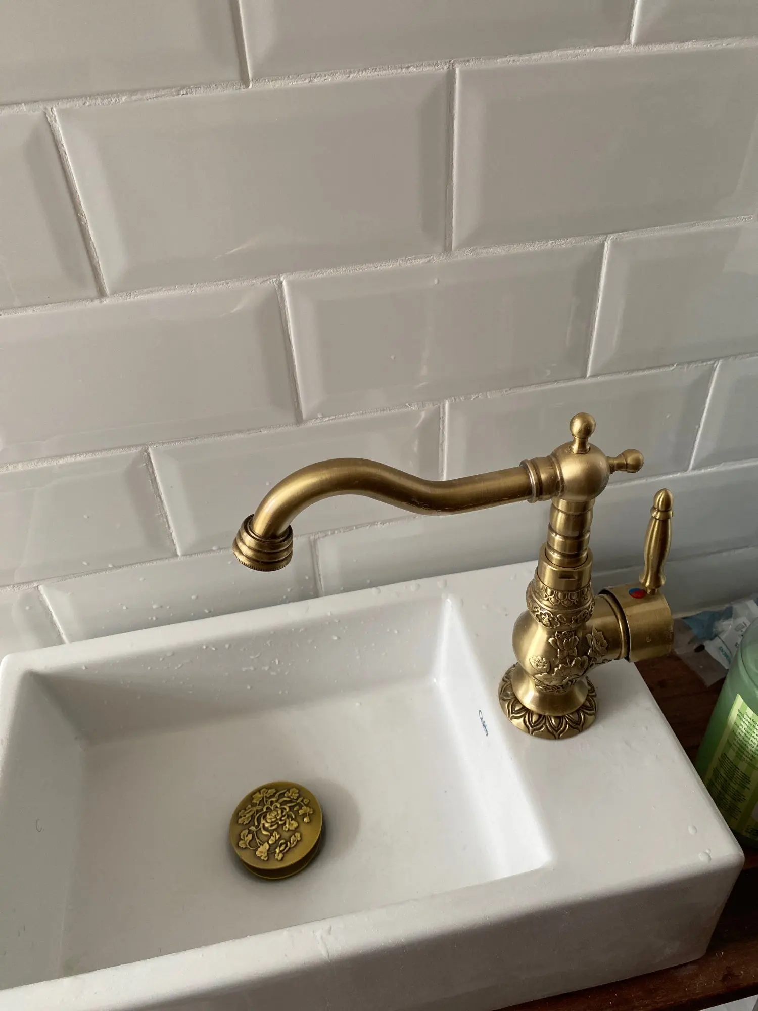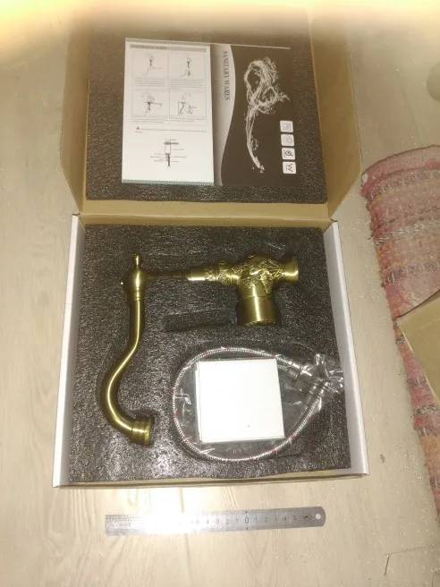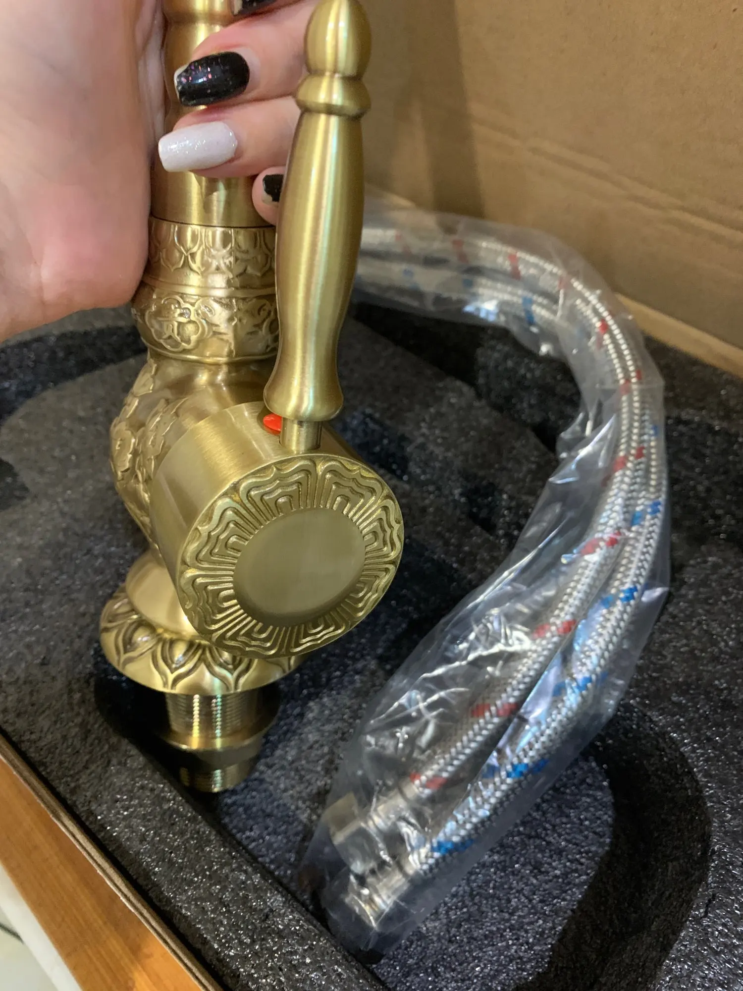 Смеситель для раковины Rozin, поворот на античный кран из латуни для умывальника градусов, с длинным носиком, с резным цветком, с одним изливом