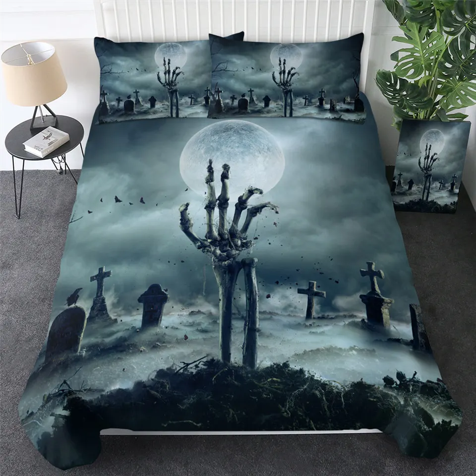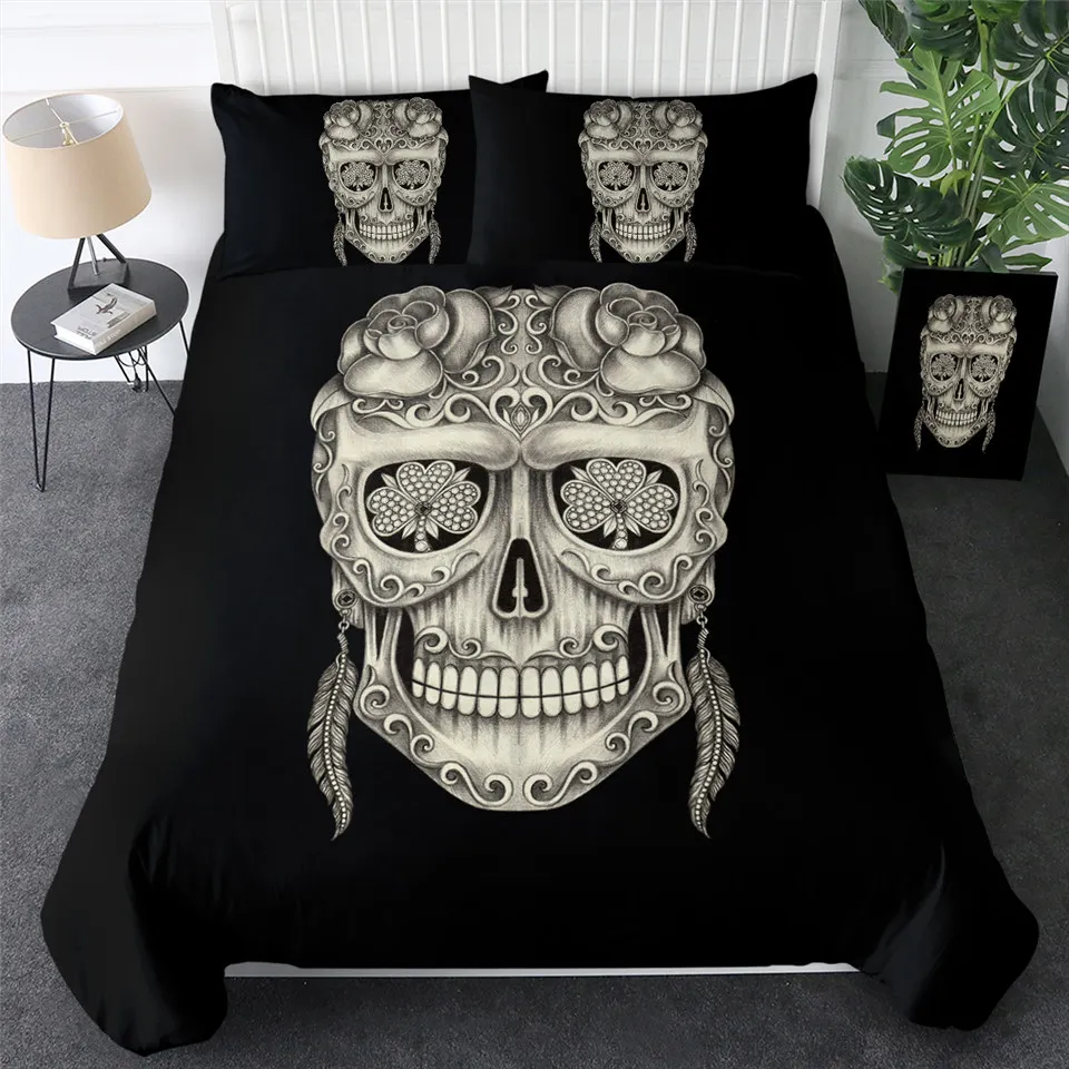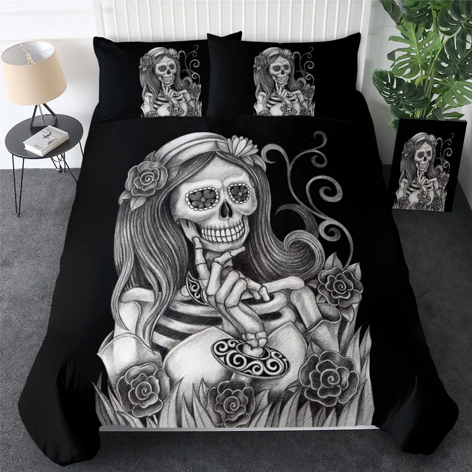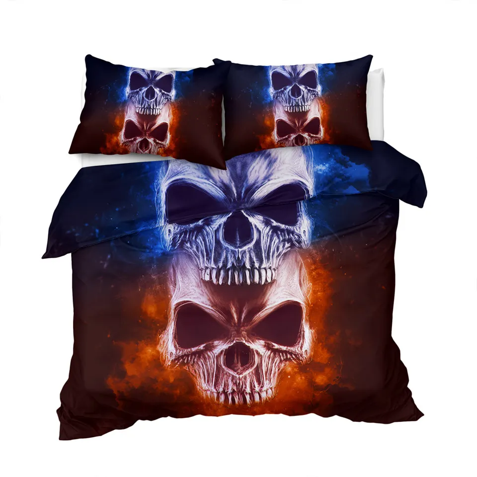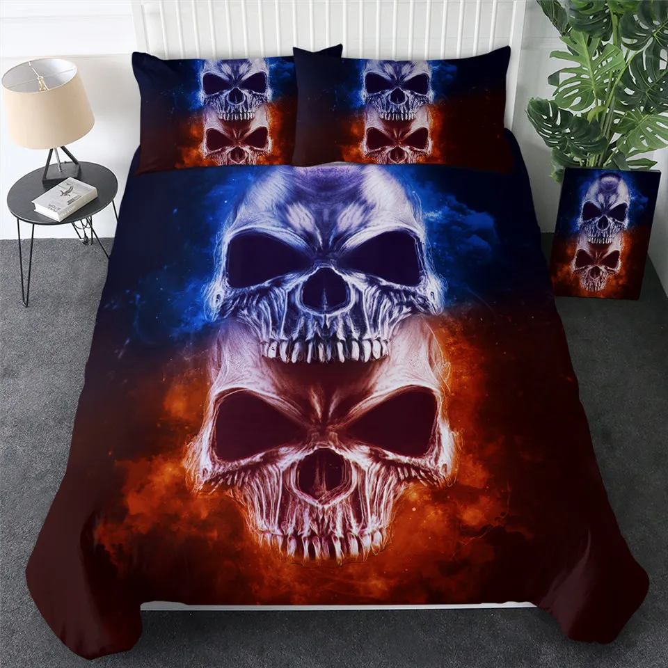 Комплект постельного белья BeddingOutlet, готический комплект из 3 предметов, с рисунком в виде черепа и пламени, с пододеяльником в готическом стиле, с рисунком синего огня