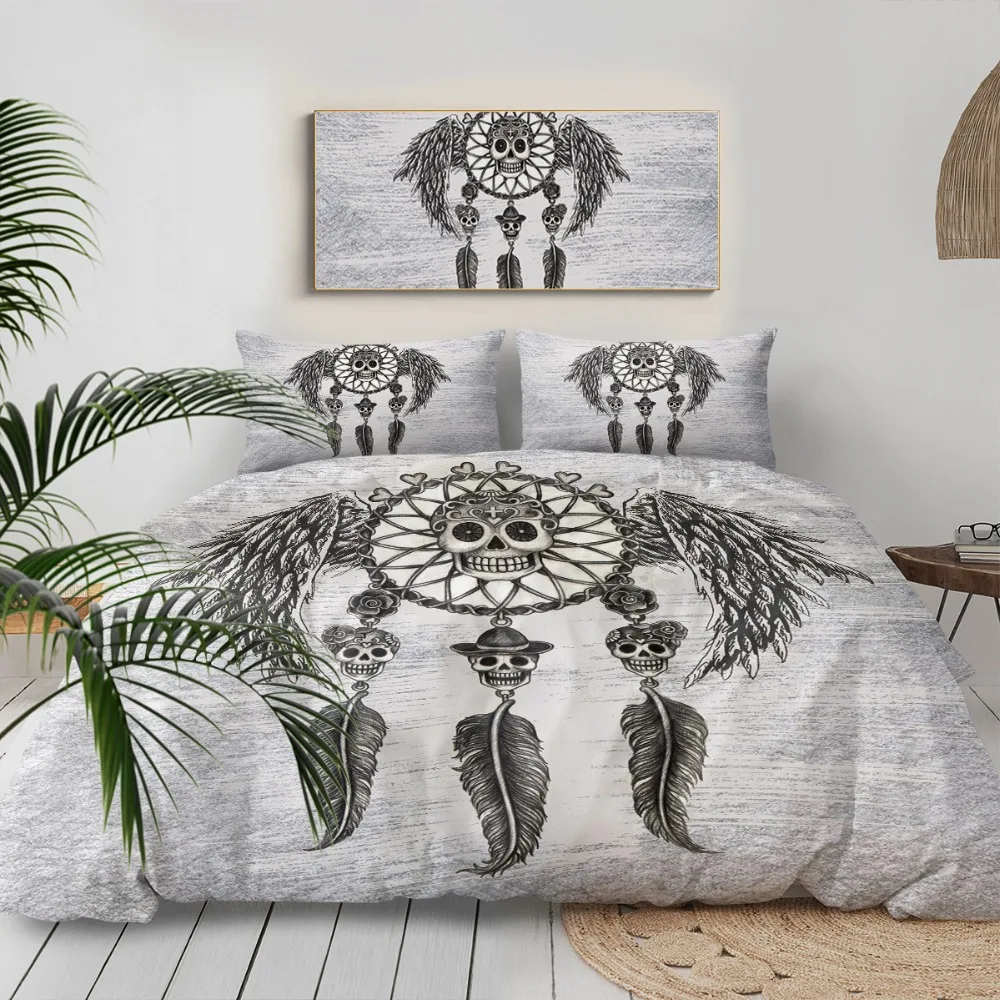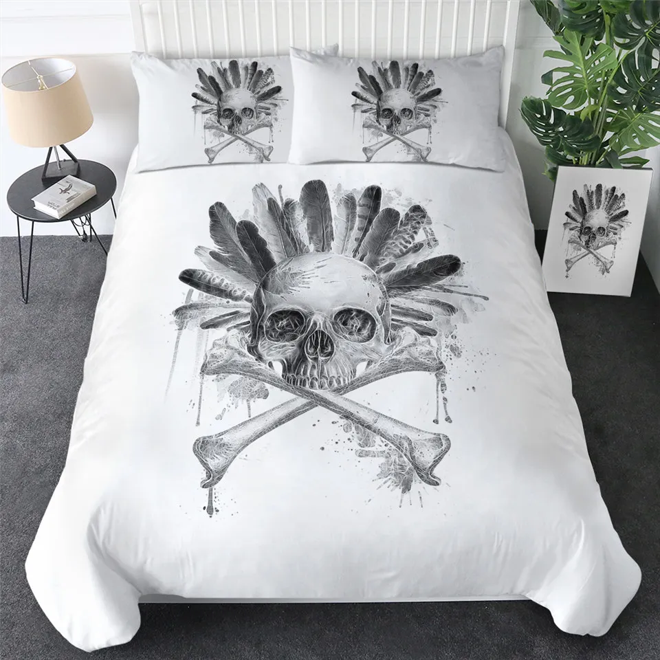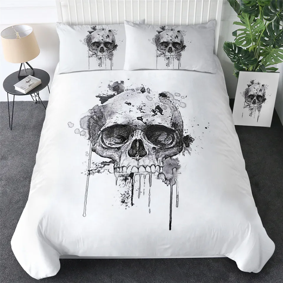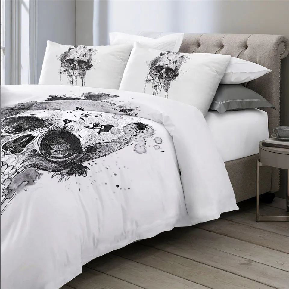 Комплект постельного белья BeddingOutlet, готический комплект из 3 предметов, с рисунком в виде черепа и пламени, с пододеяльником в готическом стиле, с рисунком синего огня