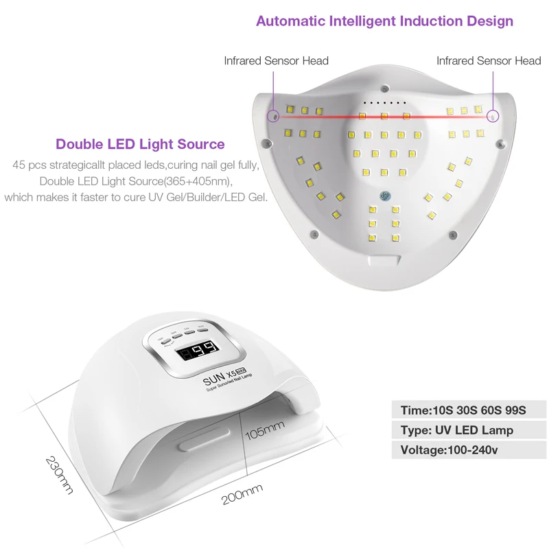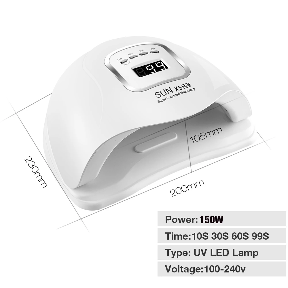 Светодиодный ная УФ-лампа для маникюра, лампа для всех видов гель-лака с ЖК-дисплеем, 150 Вт, 45 светодиодный Дов
