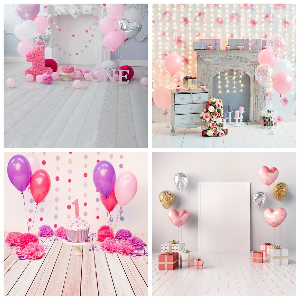 Розовый шар Laeacco, детский фон для фотосъемки с 1 днем рождения, ...