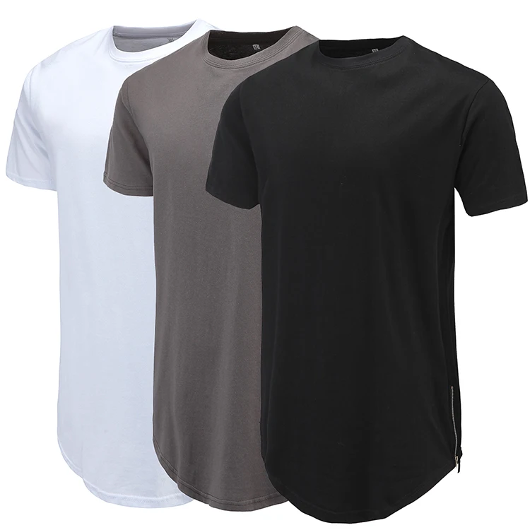 Футболка мужская длинная с закругленным подолом, на молнии, с коротким рукавом, Повседневная Уличная одежда в стиле хип-хоп, Модный лонгслив в стиле Swag