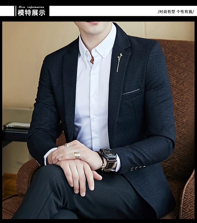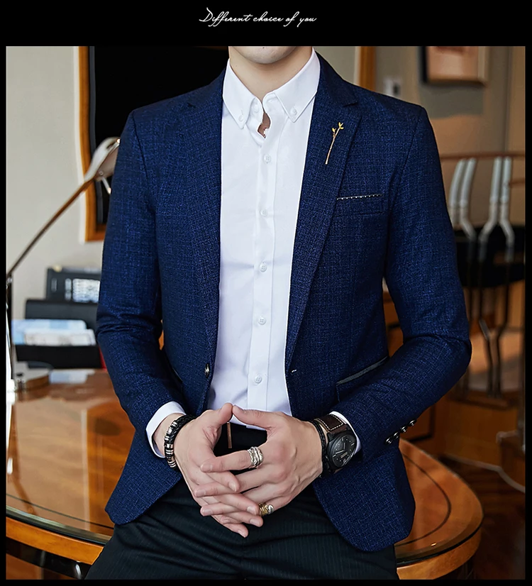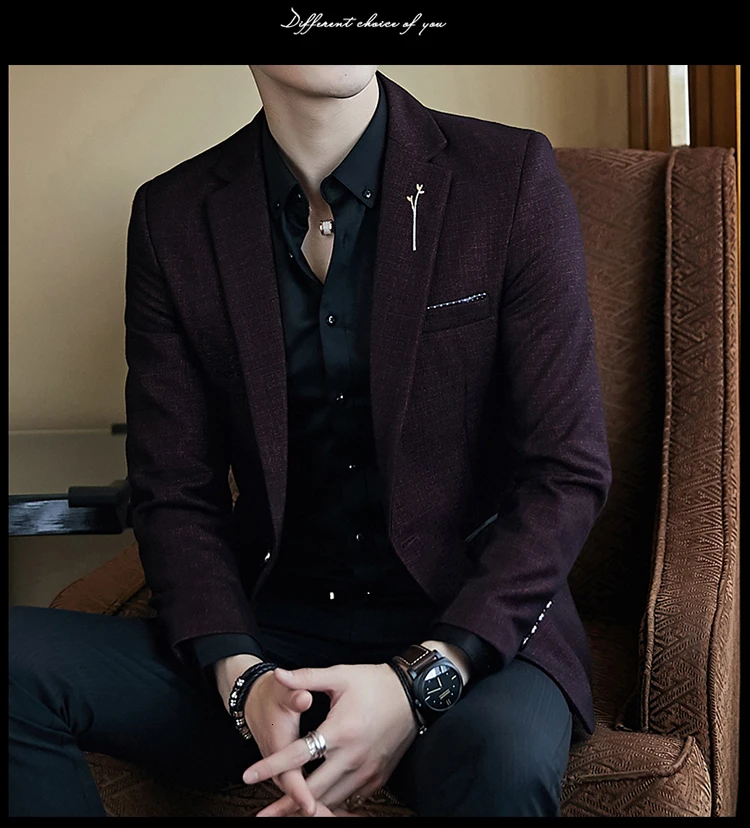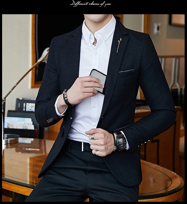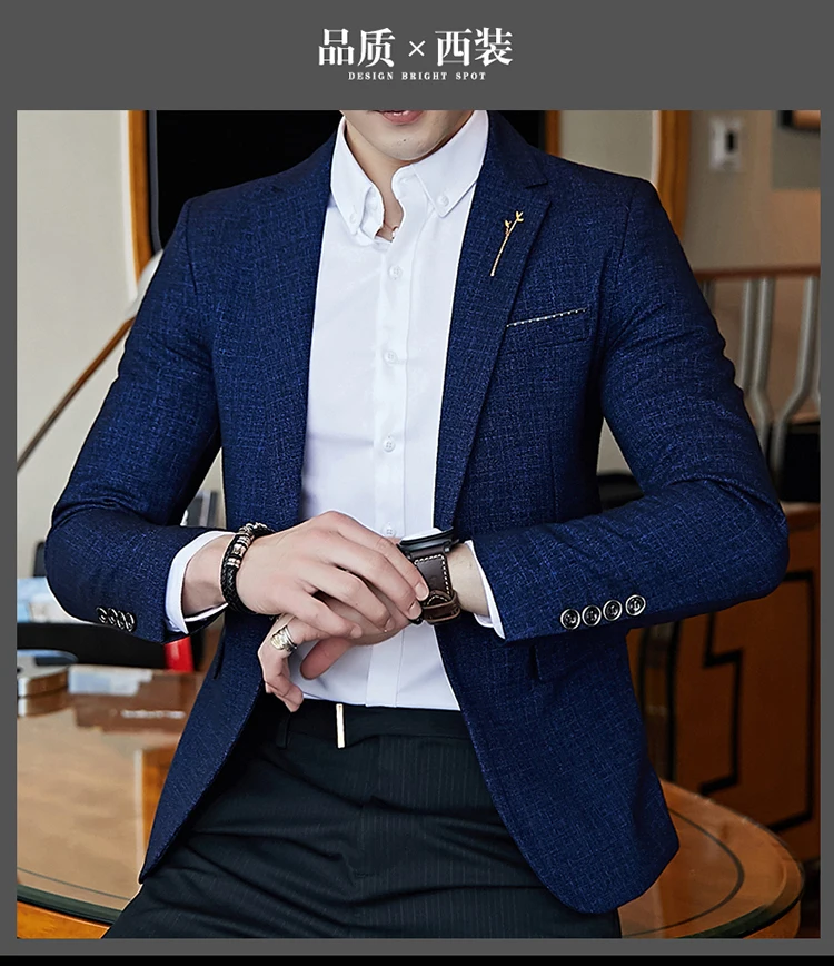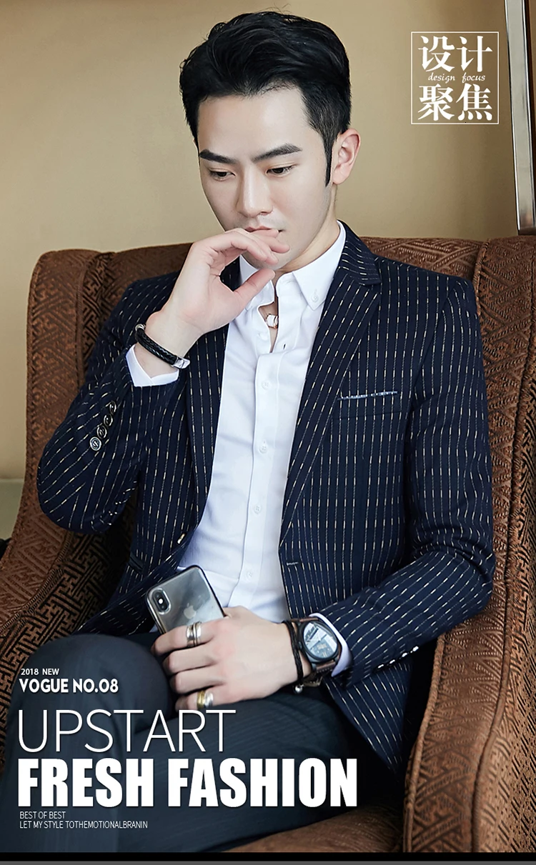 Мужской стильный приталенный блейзер в полоску и горошек, весенне-осенний повседневный пиджак в деловом стиле