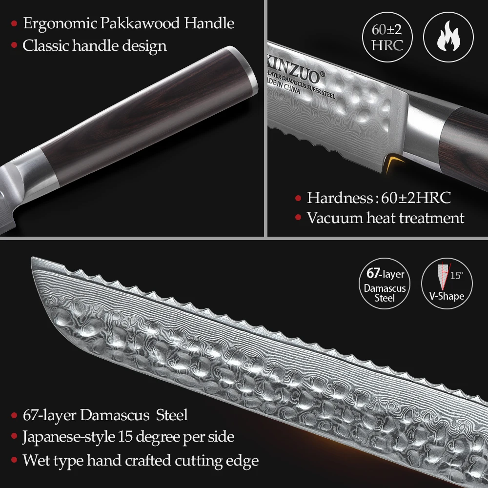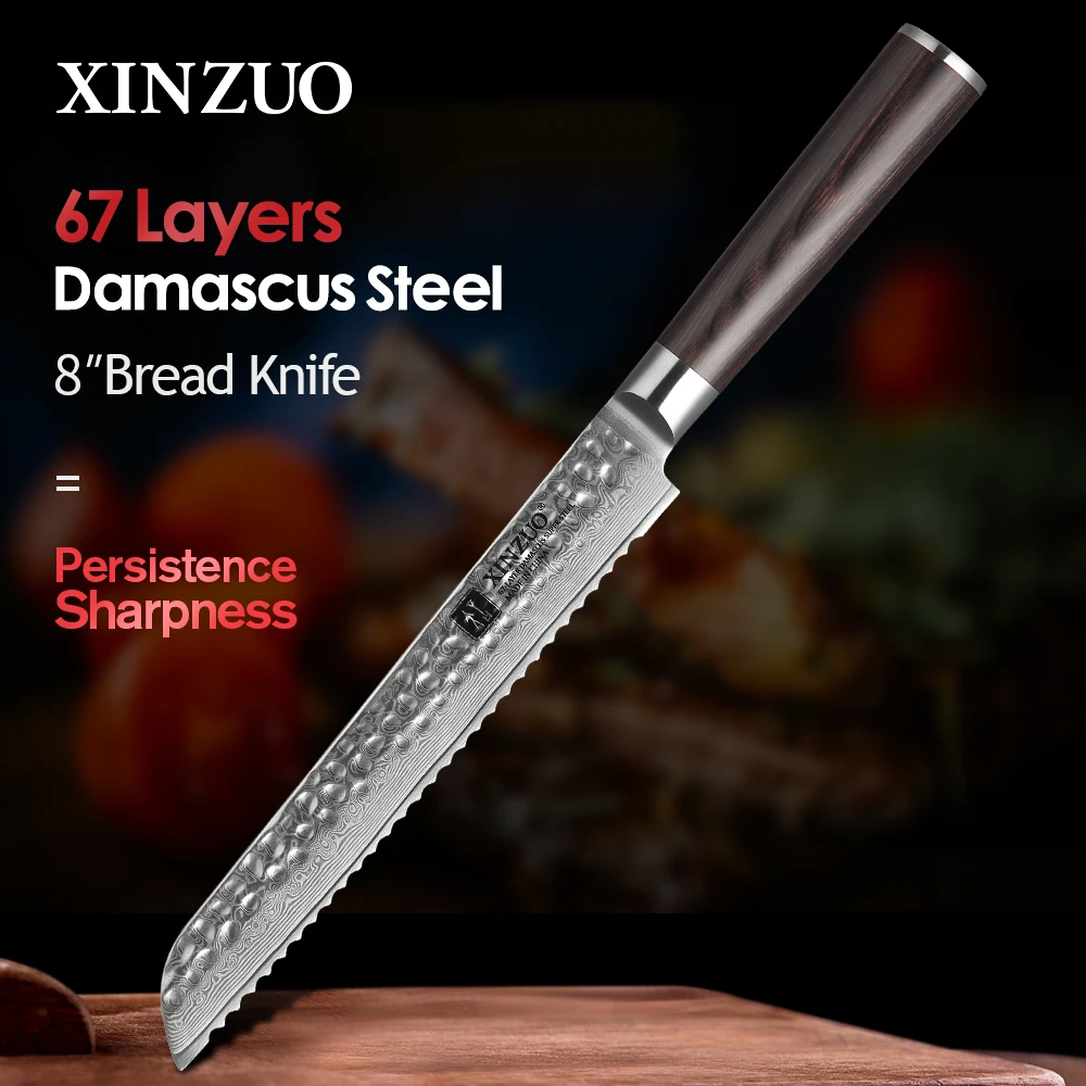 Нож XINZUO для хлеба, 8 дюймов, 67 слоев, из дамасской нержавеющей ...