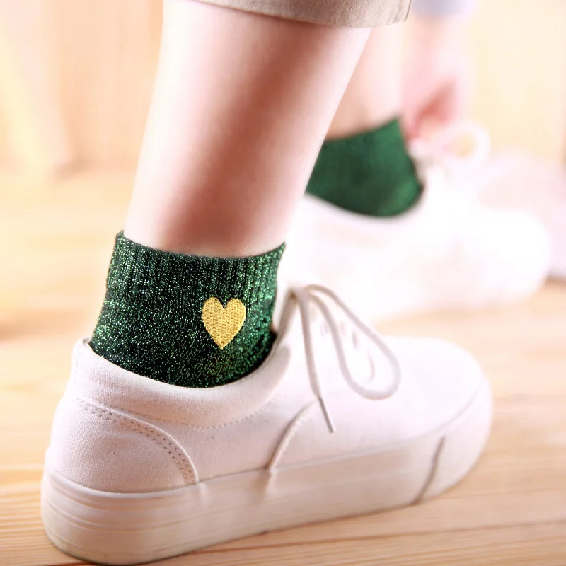 Женские носки с вышивкой в виде сердечек COSPLACOOL, модные блестящие носки из серебристого и золотого шелка, яркие носки